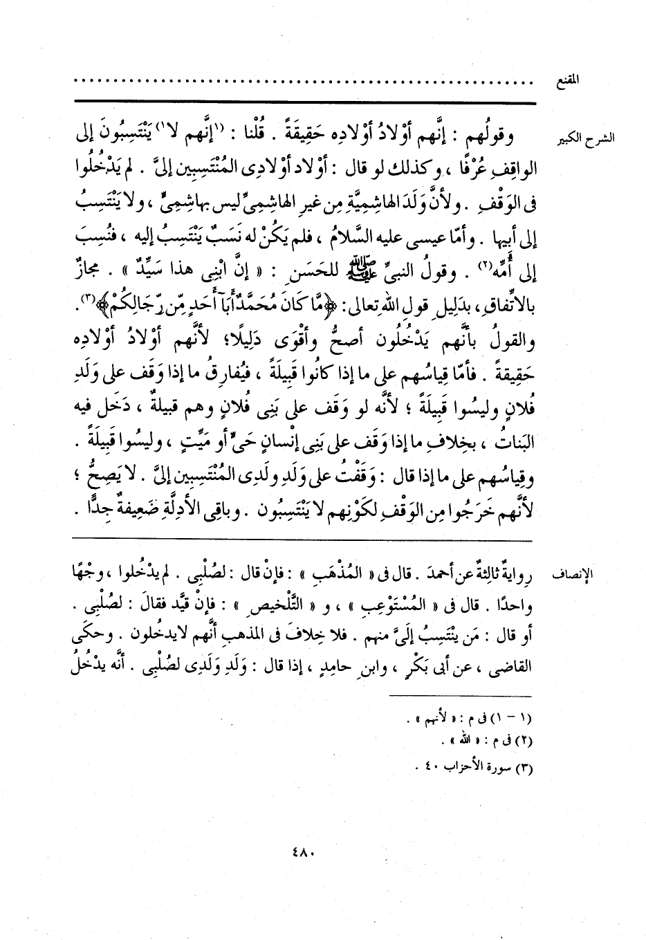 رِوايةٌ ثالِثةٌ عن أحمدَ. قال في «المُذْهَبِ»: فإنْ قال: لصُلْبِي. لم يدْخُلوا، وجْهًا واحدًا. قال في «المُسْتَوْعِبِ»، و «التَّلْخيصِ»: فإنْ قيَّد فقال: لصُلْبِي. أو قال: مَن ينْتَسِبُ إلَيَّ منهم. فلا خِلافَ في المذهبِ أنَّهم لا يدخُلون. وحكَى القاضي، عن أبي بَكْرٍ، وابنِ حامِدٍ، إذا قال: وَلَدِ وَلَدِي لصُلْبِي. أنَّه يدْخُلُ