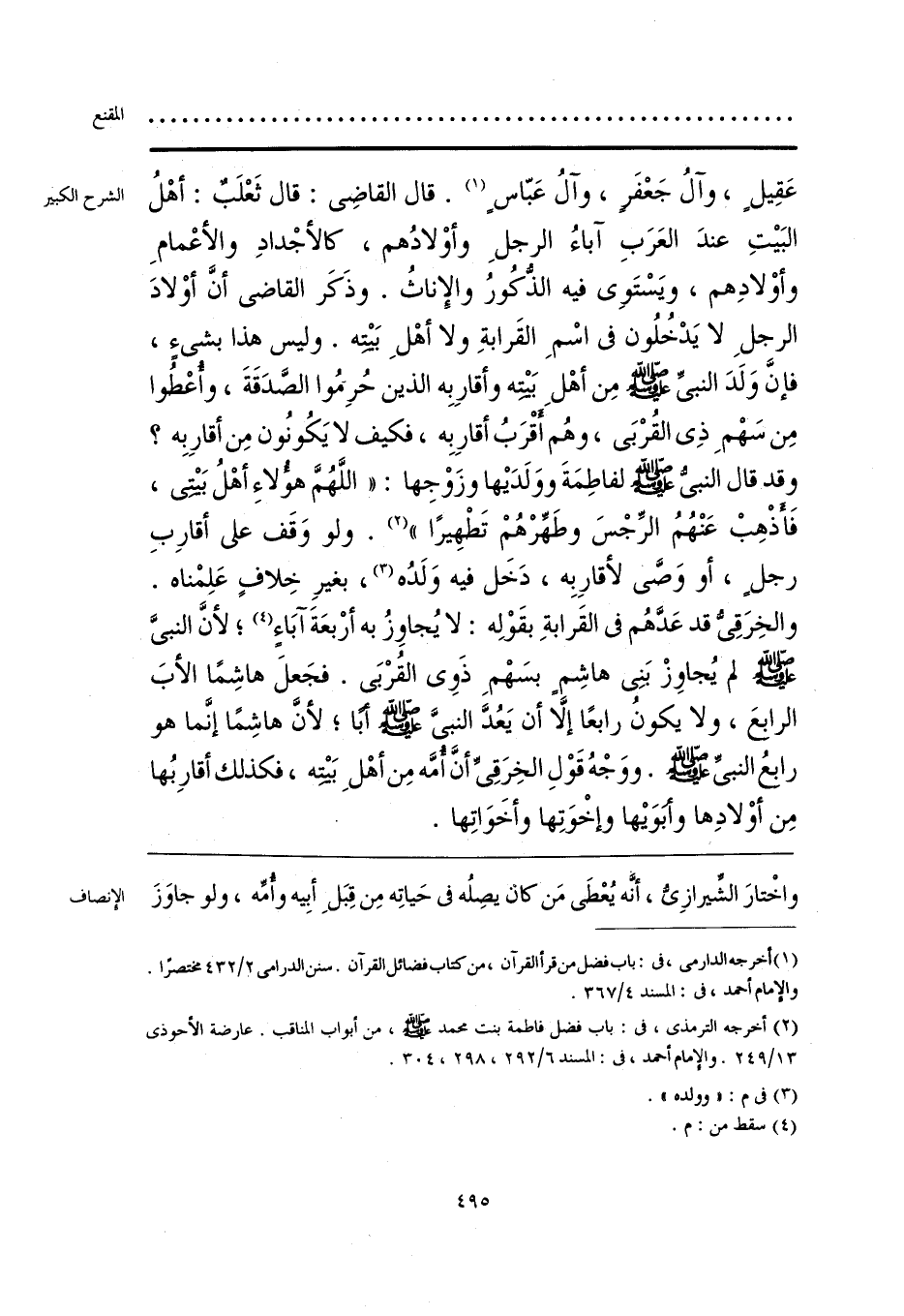 واخْتارَ الشِّيرازِيُّ، أنَّه يُعْطَى مَن كانْ يصِلُه في حَياتِه مِن قِبَلِ أبِيه وأُمِّه، ولو جاوَزَ