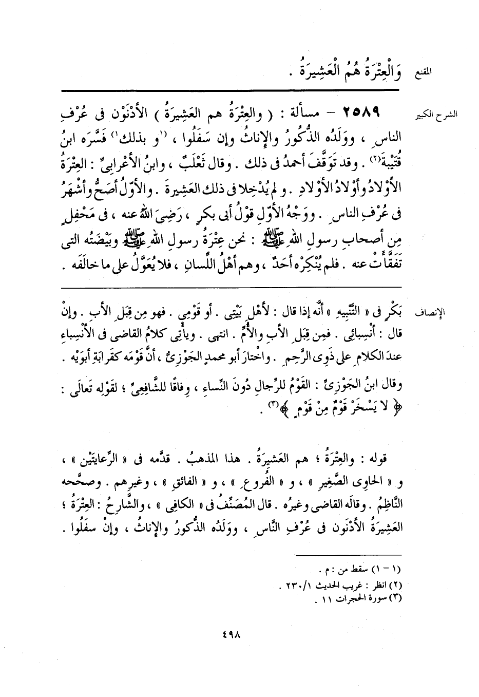 قوله: والعِتْرَةُ؛ هم العَشيِرَةُ. هذا المذهبُ. قدَّمه في «الرِّعايتَين»، و «الحاوي الصَّغِيرِ»، و «الفُروعِ»، و «الفائقِ»، وغيرِهم. وصحَّحه النَّاظِمُ. وقاله القاضي وغيرُه. قال المُصَنِّفُ في «الكافِي»، والشَّارِحُ: العِتْرَةُ؛ العَشِيرَةُ الأدْنَون في عُرْفِ النَّاسِ، ووَلَدُه الذُّكُورُ والإِناثُ، وإنْ سفَلُوا.