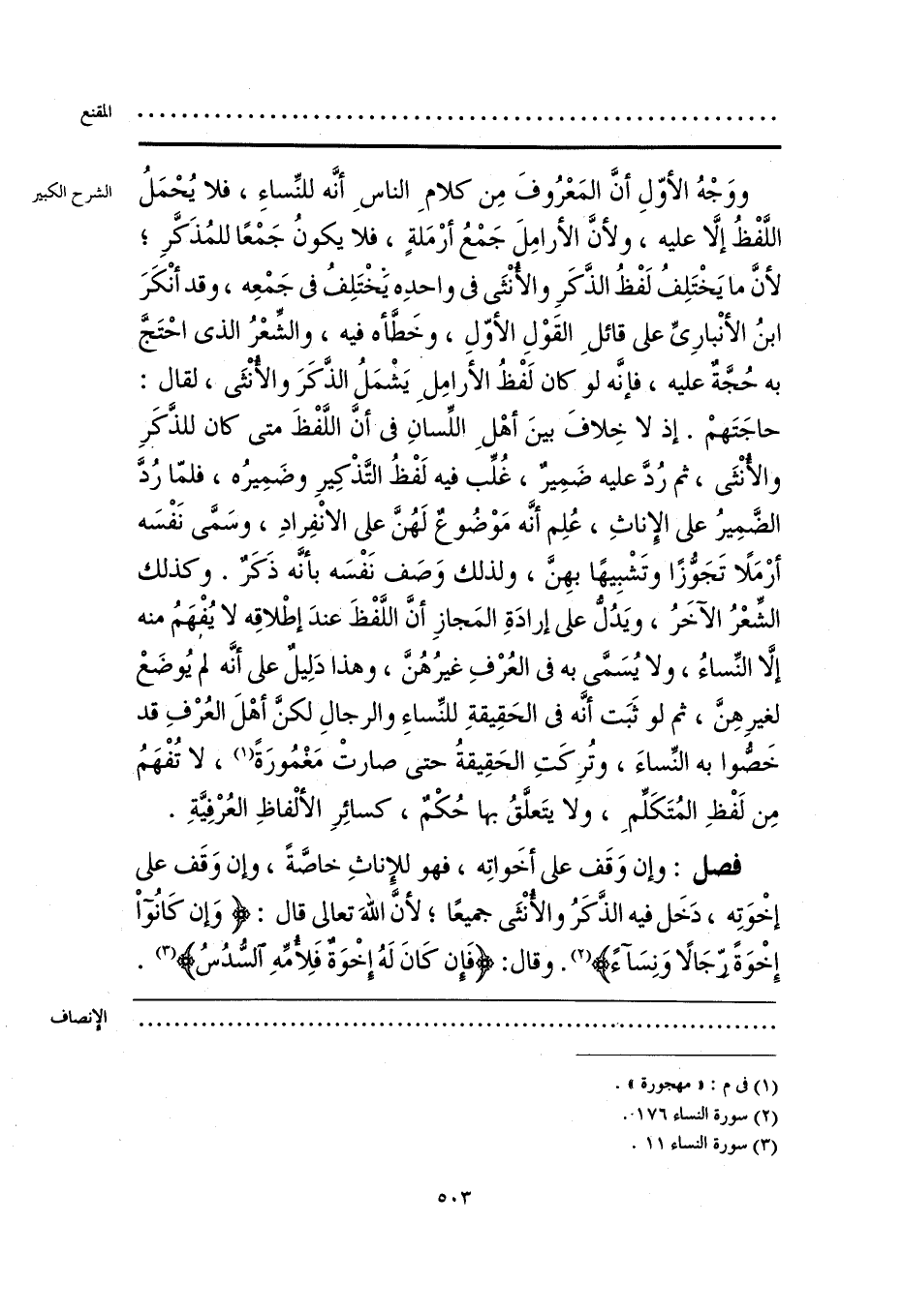 فصل: وإن وَقَف على أخَواتِه، فهو للإِناثِ خاصَّةً، وإن وَقَف على إخْوَتِه، دَخَل فيه الذَّكَرُ والأُنْثَى جميعًا؛ لأنَّ اللهَ تعالى قال: {وَإِنْ كَانُوَا إِخْوَةً رِجَالًا وَنِسَاءً} (¬2). وقال: {فَإِنْ كَانَ لَهُ إخْوَةٌ فَلأُمِّهِ السُّدُسُ} (¬3).