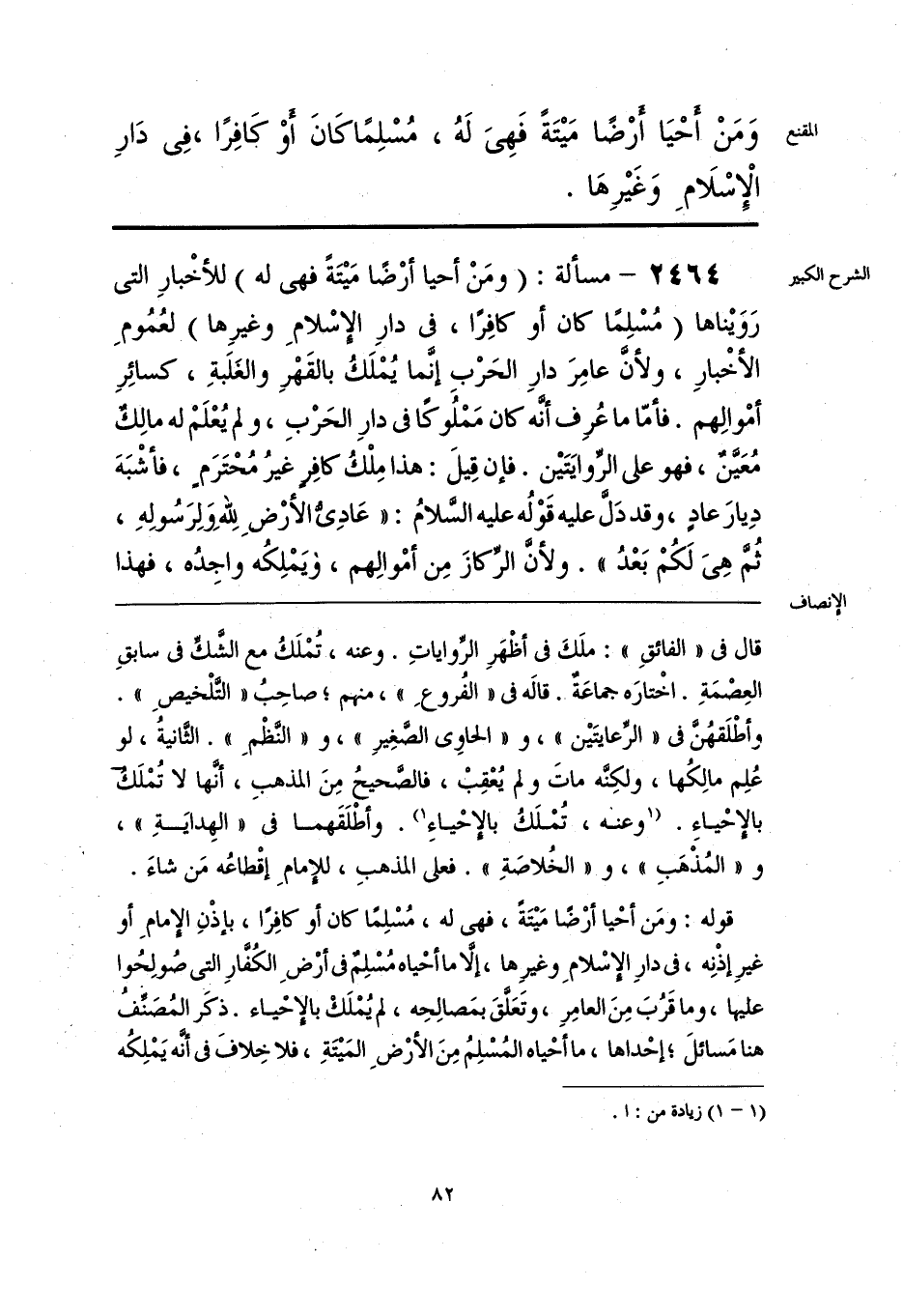 وَمَنْ أحْيَا أَرْضًا مَيتَةً فَهِيَ لَهُ، مُسْلِمًا كَانَ أو كَافِرًا، في دَارِ الإسْلَامِ وَغَيرِهَا.
