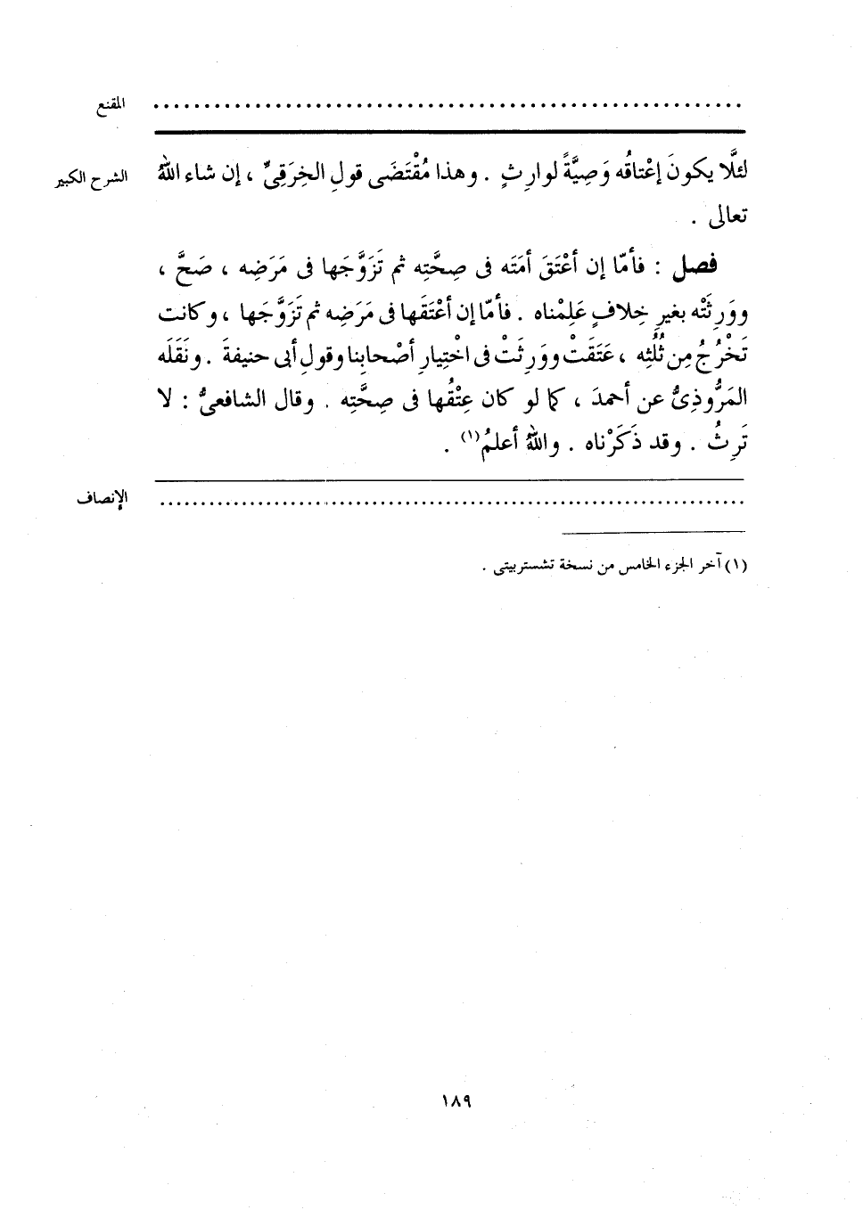 فصل: فأمّا إن أعْتَقَ أمَتَه في صِحَّتِه ثم تَزَوَّجَها في مَرَضِه، صَحَّ، ووَرِثَتْه بغيرِ خِلافٍ عَلِمْناه. فأمّا إن أعْتَقَها في مَرَضِه ثم تَزَوَّجَها، وكانت تَخْرُجُ مِن ثُلُثِه، عَتَقَتْ ووَرِثَتْ في اخْتِيارِ أصْحابِنا وقولِ أبي حنيفةَ. ونَقَلَه المَروذِيُّ عن أحمدَ، كما لو كان عِتْقُها في صِحَتِه. وقال الشافعيُّ: لا تَرِثُ. وقد ذَكَرْناه. والله أعلمُ (¬1).