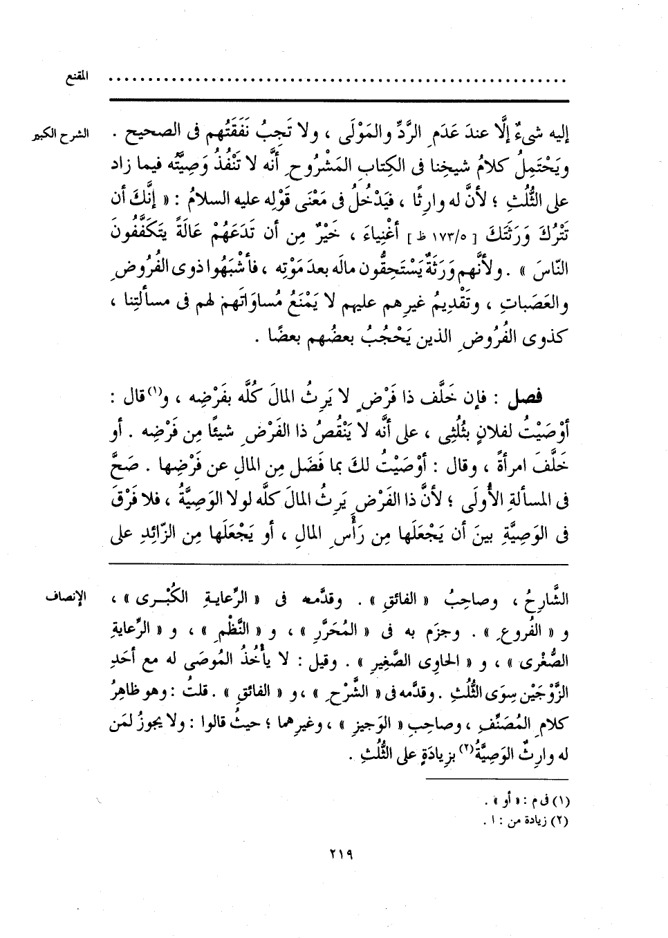 الشَّارِحُ، وصاحِبُ «الفائقِ». وقدَّمه في «الرِّعايةِ الكُبْرى»، و «الفُروعِ». وجزَم به في «المُحَررِ»، و «النظمِ»، و «الرِّعايةِ الصغْرى»، و «الحاوي الصغِيرِ». وقيل: لا يأخُذُ المُوصَى له مع أحَدِ الزَّوْجَين سِوَى الثلُثِ. وقدمه في «الشَّرْحِ»، و «الفائقِ». قلتُ: وهو ظاهِرُ كلامِ المُصَنِّفِ، وصاحِبِ «الوَجيزِ»، وغيرِهما؛ حيثُ قالوا: ولا يجوزُ لمَن له وارِث الوَصِيَّةُ (¬1) بزِيادَة على الثلُثِ.