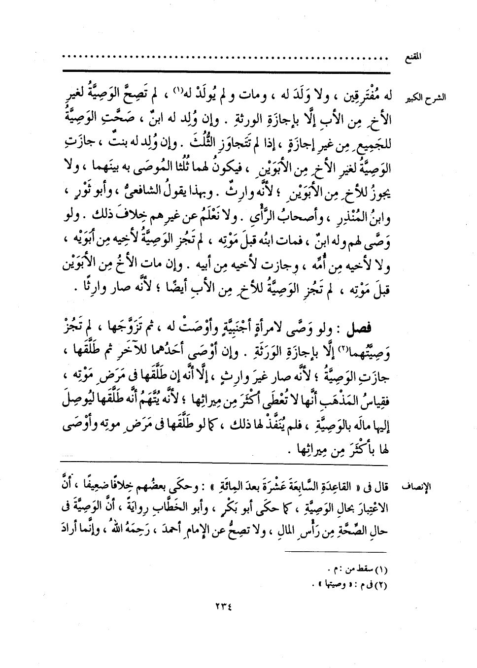 قال في «القاعِدَةِ السابِعَةَ عَشْرَةَ بعدَ المِائَةِ»: وحكَى بعضُهم خِلافًا ضعِيفًا، أن الاعْتِبارَ بحالِ الوَصِيَّةِ، كما حكَى أبو بَكْر، وأبو الخَطابِ رِوايَةً، أن الوَصِيَّةَ في حالِ الصِّحَّةِ مِن رأسِ المالِ، ولا تصِحُّ عن الإمامِ أحمدَ، رَحِمَهُ اللهُ، وإنما أرادَ