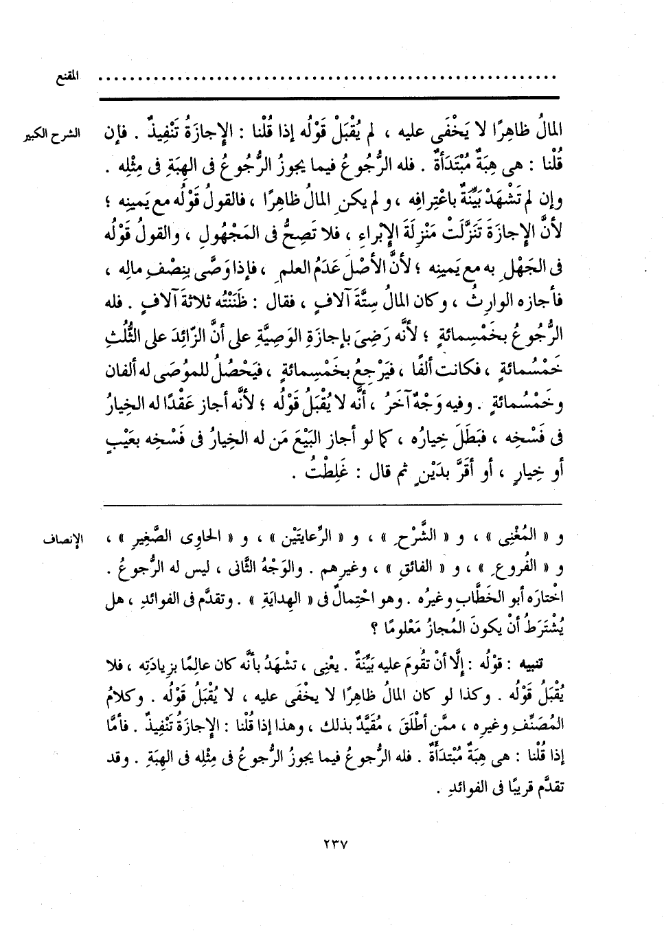 و «المُغْنِي»، و «الشَّرْحِ»، و «الرِّعايتَين»، و «الحاوي الصغِيرِ»، و «الفُروعِ»، و «الفائقِ»، وغيرِهم. والوَجْهُ الثاني، ليس له الرُّجوعُ. اخْتارَه أبو الخَطَّابِ وغيرُه. وهو احْتِمالٌ في «الهِدايَةِ». وتقدَّم في الفوائدِ، هل يُشْتَرَطُ أنْ يكونَ المُجازُ مَعْلومًا؟