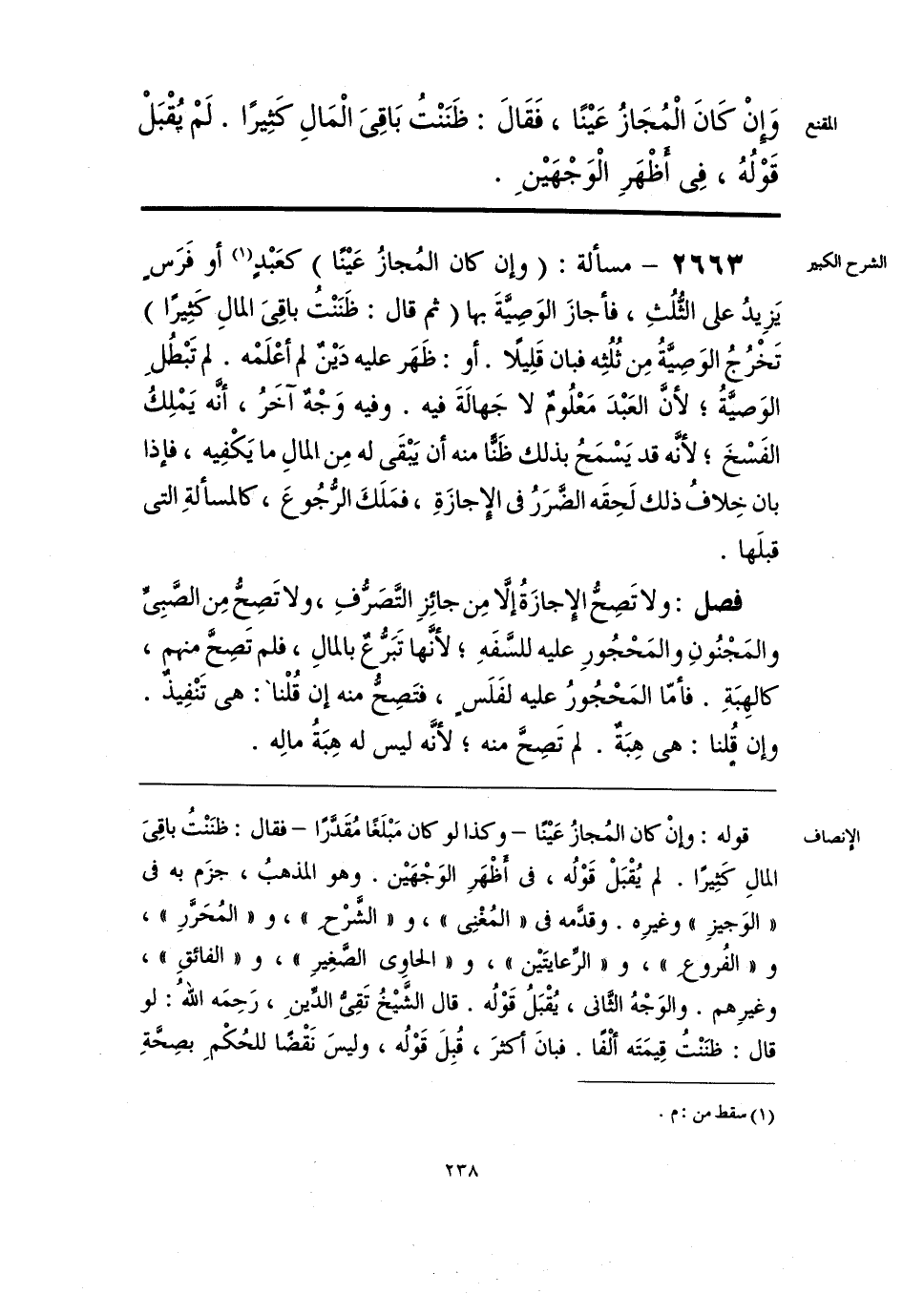 قوله: وإنْ كان المُجازُ عَينًا -وكذا لو كان مَبْلَغًا مُقَدَّرًا- فقال: ظنَنْتُ باقِيَ المالِ كثيرًا. لم يُقْبَلْ قَوْلُه، في أظْهَرِ الوَجْهَين. وهو المذهبُ، جزَم به في «الوَجيزِ» وغيرِه. وقدَّمه في «المُغْنِي»، و «الشَّرْح»، و «المُحَرَّرِ»، و «الفُروع»، و «الرعايتَين»، و «الحاوي الصغِيرِ»، و «الفائقِ»، وغيرِهم. والوَجْهُ الثاني، يُقْبَلُ قَوْلُه. قال الشَّيخُ تَقِي الدِّينِ، رَحِمَه اللهُ: لو قال: ظنَنْتُ قِيمَتَه ألْفًا. فبانَ أكثرَ، قُبِلَ قَوْلُه، وليسَ نَقْضًا للحُكْمِ بصِحَّةِ