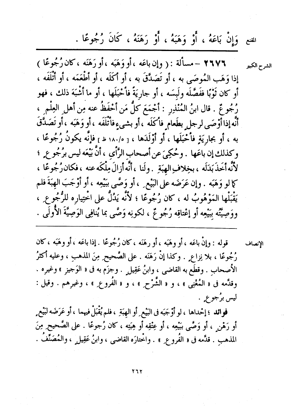 قوله: وإنْ باعَه، أو وهَبَه، أو رهَنَه، كان رُجُوعًا. إذا باعَه، أو وهَبَه، كان رُجُوعًا، بلا نِزاعٍ. وكذا إنْ رَهَنَه. على الصَّحيحِ مِنَ المذهبِ، وعليه أكثرُ الأصحابِ. وقطَع به القاضي، وابنُ عَقِيلٍ. وجزَم به في «الوَجيزِ» وغيرِه. وقدَّمه في «المُغْنِي»، و «الشرْحِ»، و «الفُروعِ»، وغيرِهم. وقيل: ليس برُجوعٍ.