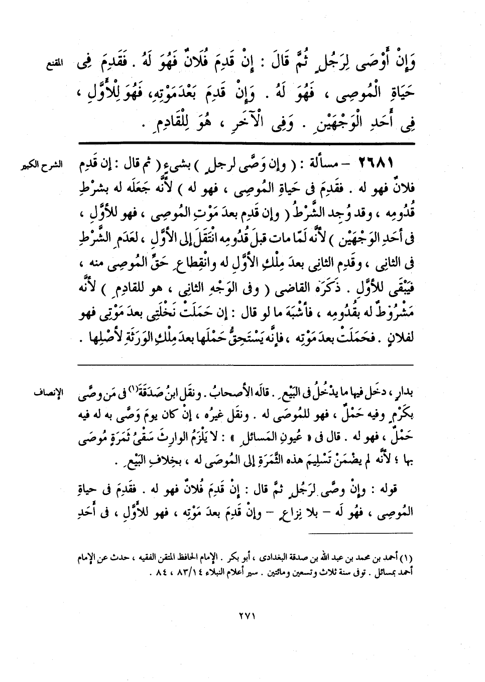 قوله: وإنْ وصَّى لرَجُلٍ ثمَّ قال: إنْ قَدِمَ فُلانٌ فهو له. فقَدِمَ في حياةِ المُوصِي، فهُو لَه -بلا نِزاع- وإنْ قَدِمَ بعدَ مَوْتِه، فهو للأوَّلِ، في أحَدِ