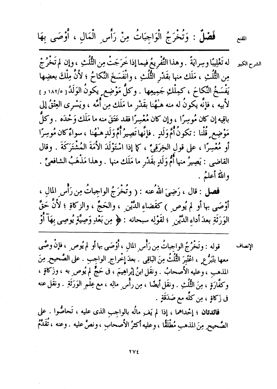 فَصْلٌ: وَتُخْرَجُ الْوَاجِبَاتُ مِنْ رَأَسِ الْمَالِ، أَوْصَى بِهَا