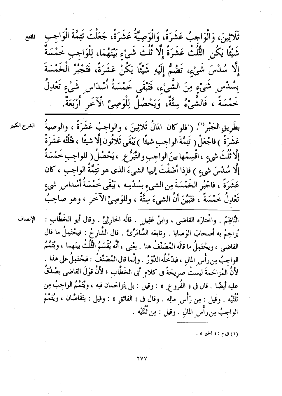 النَّاظِمُ. واخْتارَه القاضي، وابنُ عَقِيل. قاله الحارِثِيُّ. وقال أبو الخَطَّابِ: يُزاحِمُ به أصحابَ الوَصايا. وتابعَه السَّامَرِّيُّ. قال الشَّارِحُ: فيحْتَمِلُ ما قال القاضي، ويحْتَمِلُ ما قاله المُصَنِّفُ هنا. يعْنِي، أنَّه يُقْسَمُ الثلُثُ بينَهما، ويُتَمَّمُ الواجِبُ مِن رأْسِ المالِ، فيدْخُلُه الدَّوْرُ. وإنَّما قال المُصَنِّفُ: فيحْتَمِلُ على هذا. لأن المُزاحَمةَ ليستْ صرِيحَةً في كلامِ أبي الخَطَّابِ؛ لأنَّ قوْلَ القاضي يصْدُقُ عليه أيضًا. قال في «الفُروعِ»: وقيل: بل يتَزاحَمان فيه، ويُتَمَّمُ الواجِبُ مِن ثُلُثَيه. وقيل: مِن رَأْسِ مالِه. وقال في «الفائقِ»: وقيل: يتَقَاصَّان، ويُتَمَّمُ الواجِبُ مِن رأْسِ المالِ. وقيل: مِن ثُلُثَيه.