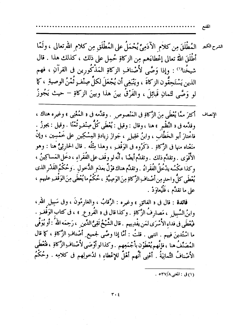 فائدة: قال في «الفائقِ» وغيرِه: الرِّقابُ، والغارِمُونَ، وفي سَبِيلِ اللهِ، وابنُ السَّبِيلِ، مَصارِفُ الزَّكاةِ. وكذا قال في «الفُروعِ»، في كتابِ الوَقْفِ. فيُعْطَى في فداءِ الأسْرَى لمَن يفْدِيهم. قال الشَّيخُ تَقِيُّ الدِّينِ، رَحِمَه اللهُ: أو يُوَفَّى ما اسْتُدينَ فيهم. انتهى. قلتُ: أمَّا إذا وصَّى لجميعِ أصْنافِ الزكاةِ، كما قال المُصَنِّفُ هنا، فإنهم يُعْطَوْن بأجْمَعِهم. وكذا لو أوْصَى لأصْنافِ الزَّكاةِ، فتُعْطَى الأصْنافُ الثَّمانِيَةُ. أعْنِي أنَّهم أهْلٌ للإعْطاءِ؛ لدُخولِهم في كلامِه. وحُكْمُ
