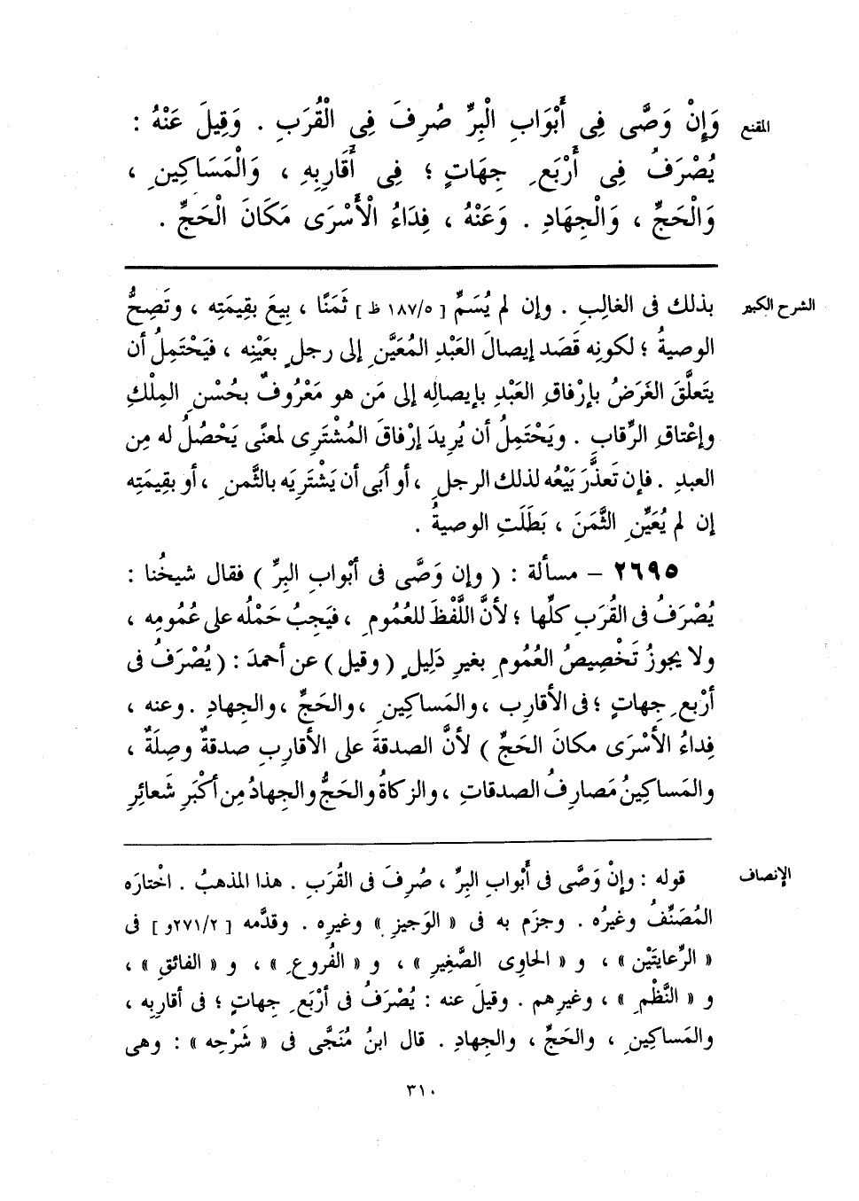 وَإِنْ وَصَّى في أَبْوَابِ الْبِرِّ صُرِفَ في الْقُرَبِ. وَقِيلَ عَنْهُ: يُصْرَفُ في أَرْبَعِ جِهَاتٍ؛ في أقَارِبِهِ، وَالْمَسَاكِينِ، وَالْحَجِّ، وَالْجِهَادِ. وَعَنْهُ، فِدَاءُ الْأَسْرَى مَكَانَ الْحَجِّ.