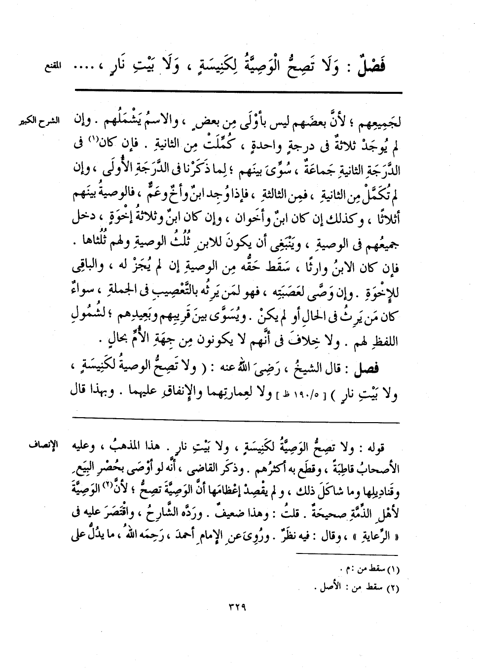 قوله: ولا تصِحُّ الوَصِيَّةُ لكَنِيسَةٍ، ولا بَيتِ نارٍ. هذا المذهبُ، وعليه الأصحابُ قاطِبَةً، وقطَع به أكثرُهم. وذكَر القاضي، أنَّه لو أوْصَى بحُصْرِ البِيَعِ وقَنادِيلِها وما شاكَلَ ذلك، ولم يقْصِدْ إعْظامَها أنَّ الوَصِيَّةَ تصِحُّ؛ لأنَّ (¬1) الوَصِيَّةَ لأهْلِ الذِّمَّةِ صحيحَةٌ. قلتُ: وهذا ضعيفٌ. ورَدَّه الشَّارِحُ، واقْتَصَرَ عليه في «الرِّعايةِ»، وقال: فيه نظَرٌ. ورُوِيَ عنِ الإِمامِ أحمدَ، رَحِمَه اللهُ، ما يدُلُّ على