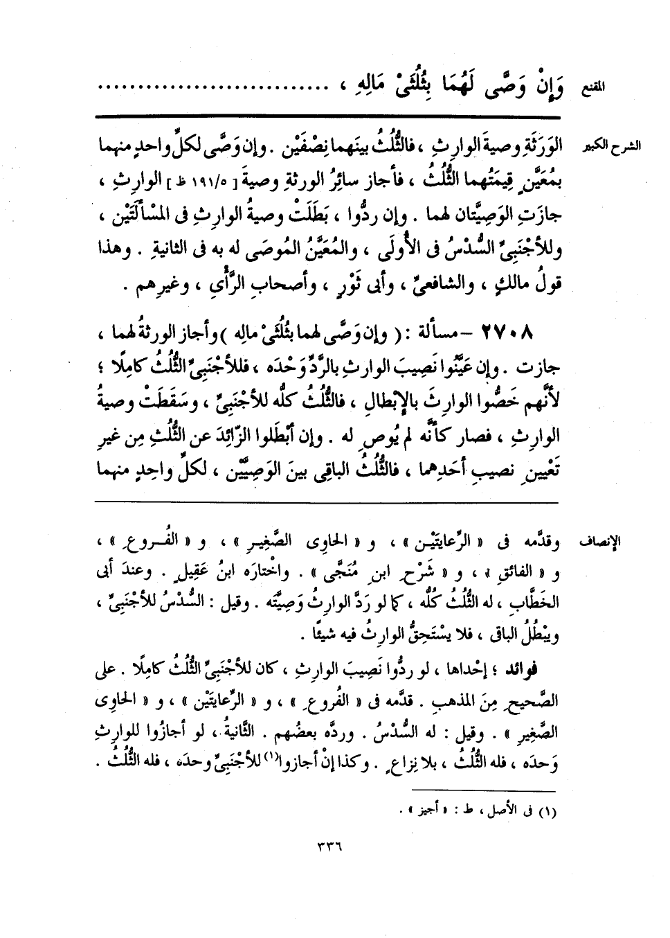 فوائد؛ إحْداها, لو ردُّوا نَصِيبَ الوارِثِ، كان للأجْنَبِيِّ الثُّلُثُ كامِلًا. على الصَّحيح مِنَ المذهبِ. قدَّمه في «الفُروعِ»، و «الرِّعايتَين»، و «الحاوي الصَّغِيرِ». وقيل: له السُّدْسُ. وردَّه بعضُهم. الثَّانيةُ.، لو أجازُوا للوارِثِ وَحدَه، فله الثُّلُثُ، بلا نِزاعٍ. وكذا إنْ أجازوا (¬1) للأجْنَبِيِّ وحدَه، فله الثُّلُثُ.