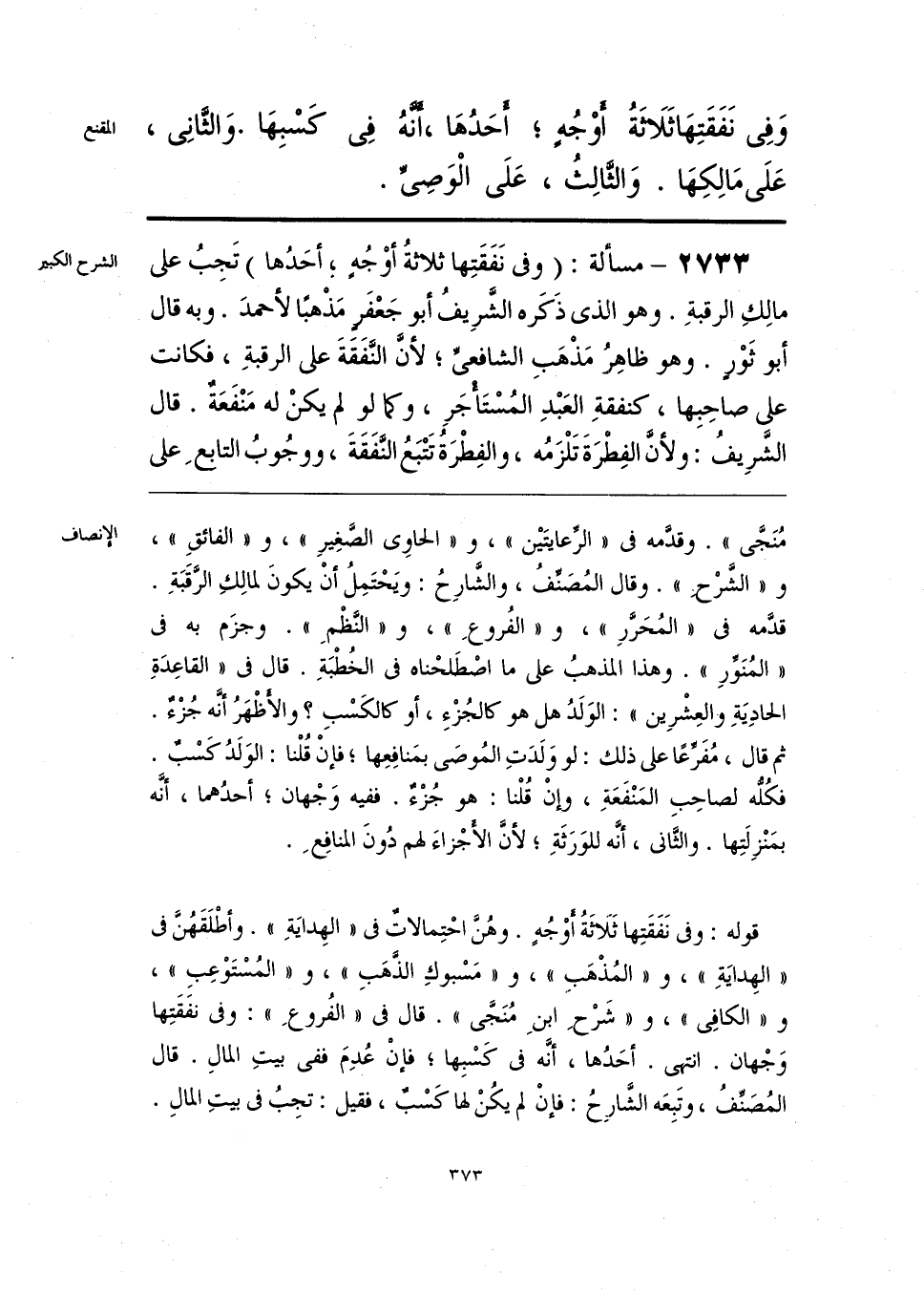 قوله: وفي نَفَقَتِها ثَلاثةُ أوْجُهٍ. وهُنَّ احْتِمالاتٌ في «الهِدايَةِ». وأطْلَقَهُنَ في «الهِدايَةِ»، و «المُذْهَب»، و «مَسْبوكِ الذهبِ»، و «المُسْتَوْعِبِ»، و «الكافِي»، و «شَرْحِ ابنِ مُنَجَّى». قال في «الفُروعِ»: وفي نفَقَتِها وَجْهان. انتهى. أحَدُها، أنَّه في كَسْبِها؛ فإنْ عُدِمَ ففي بيتِ المالِ. قال المُصَنِّفُ، وتَبِعَه الشَّارحُ: فإنْ لم يكُنْ لها كَسْبٌ، فقيل: تجِبُ في بيتِ المالِ.