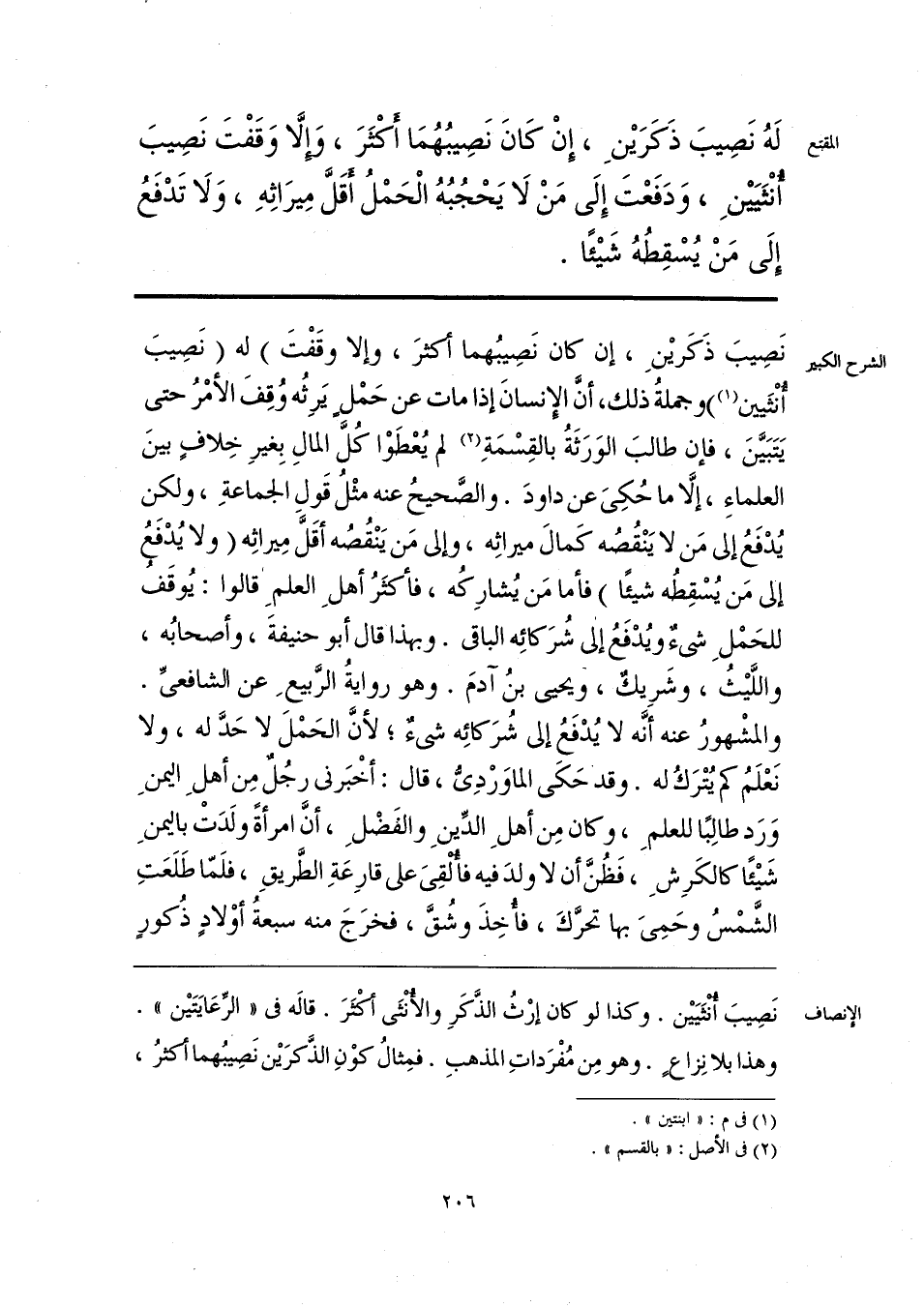 نَصِيبَ أُنْثَيَين. وكذا لو كان إرْثُ الذَّكَرِ والأُنْثَى أكْثَرَ. قاله في «الرِّعَايَتَين». وهذا بلا نِزاعٍ. وهو مِن مُفْرَداتِ المذهبِ. فمِثالُ كوْنِ الذَّكرَين نَصِيبُهما أكثرُ،