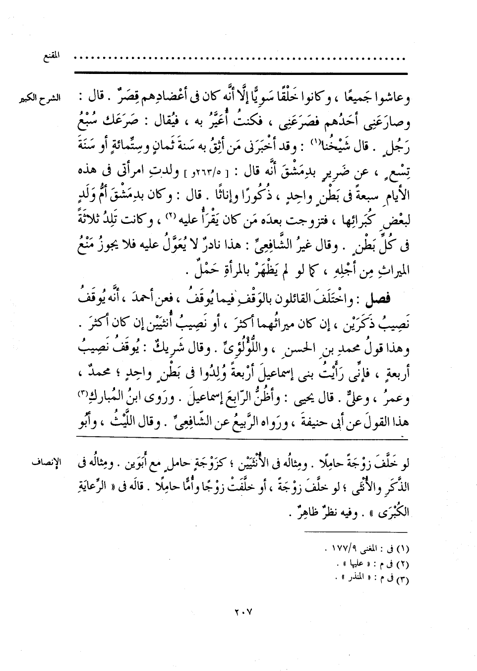 لو خَلَّفَ زوْجَةً حامِلًا. ومِثالُه في الأُنْثَيَينِ؛ كزَوْجَةٍ حاملٍ مع أَبوَين. ومِثالُه في الذَّكَرِ والأُنْثَى؛ لو خلفَ زوْجَةً، أو خلَّفَتْ زوْجًا وأُمًّا حامِلًا. قاله في «الرِّعايَةِ الكُبْرَى». وفيه نظرٌ ظاهِرٌ.