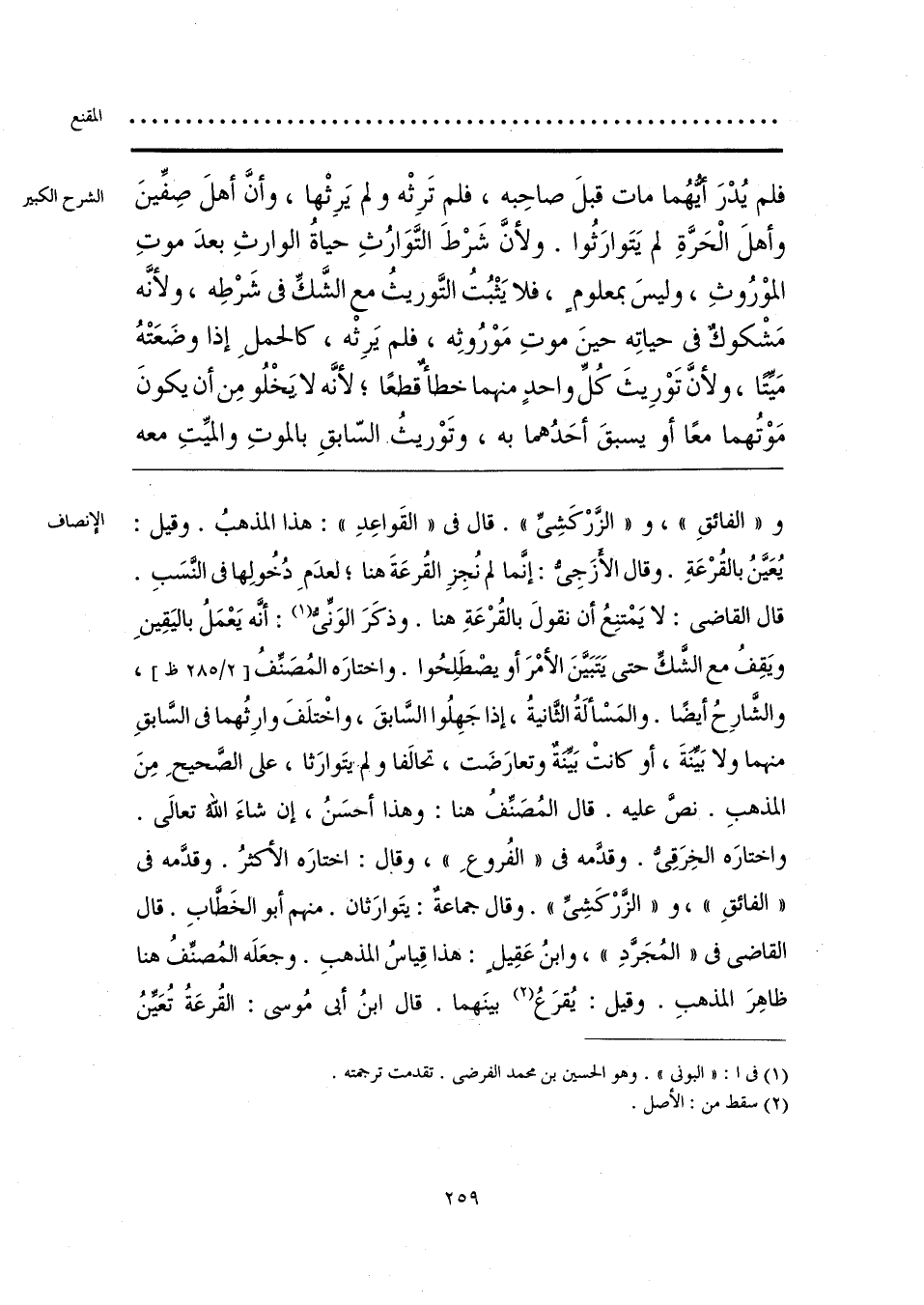 و «الفائقِ»، و «الزَّرْكَشِيِّ». قال في «القَواعِدِ»: هذا المذهبُ. وقيل: يُعَيَّنُ بالقُرْعَةِ. وقال الأَزَجِيُّ: إنَّما لم نُجِزِ القُرعَةَ هنا؛ لعدَمِ دُخُولِها في النَّسَبِ. قال القاضي: لا يَمْتنِعُ أن نقولَ بالقُرْعَةِ هنا. وذكَرَ الوَنِّيُّ (¬1): أنَّه يَعْمَلُ باليَقِينِ ويَقِفُ مع الشَّكِّ حتى يَتَبَيَّنَ الأمْرَ أو يصْطَلِحُوا. واختارَه المُصَنِّفُ، والشَّارِحُ أيضًا. والمَسْألَةُ الثَّانيةُ، إذا جَهِلُوا السَّابقَ، واخْتلَفَ وارِثُهما في السَّابقِ منهما ولا بَيِّنَةَ، أو كانتْ بَيِّنَةٌ وتعارَضَت، تحالفا ولم يتَوارَثا، على الصَّحيحِ مِنَ المذهبِ. نصَّ عليه. قال المُصَنِّفُ هنا: وهذا أحسَنُ، إن شاءَ الله تعالى. واختارَه الخِرَقِيُّ. وقدَّمه في «الفُروعِ»، وقال: اختارَه الأكثرُ. وقدَّمه في «الفائقِ»، و «الزَّرْكَشِي». وقال جماعةٌ: يتَوارَثان. منهم أبو الخَطَّابِ. قال القاضي في «المُجَرَّدِ»، وابنُ عَقِيلٍ: هذا قِياسُ المذهبِ. وجعَلَه المُصنِّفُ هنا ظاهِرَ المذهبِ. وقيل: يُقرَعُ (¬2) بينَهما. قال ابنُ أبي مُوسى: القُرعَةُ تُعَيِّنُ