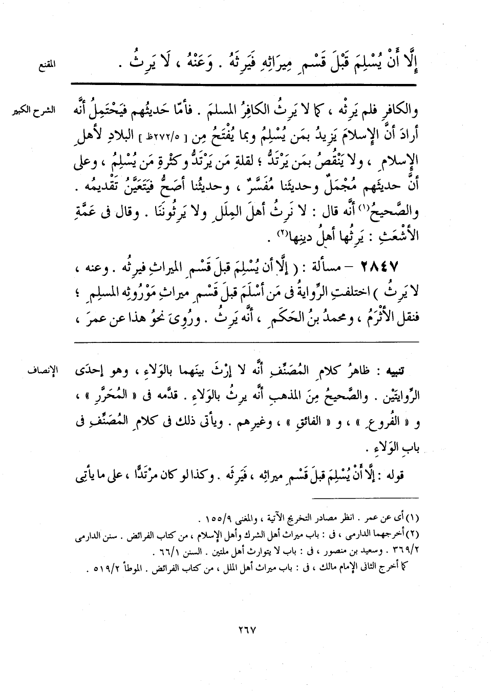 تنبيه: ظاهرُ كلامِ المُصَنِّفِ أنَّه لا إرْثَ بينَهما بالوَلاءِ، وهو إحدَى الرِّوايتَين. والصَّحيحُ مِنَ المذهبِ أنَّه يرِثُ بالوَلاءِ. قدَّمه في «المُحَرَّرِ»، و «الفُروعِ»، و «الفائقِ»، وغيرِهم. ويأتي ذلك في كلامِ المُصَنفِ في بابِ الوَلاءِ.