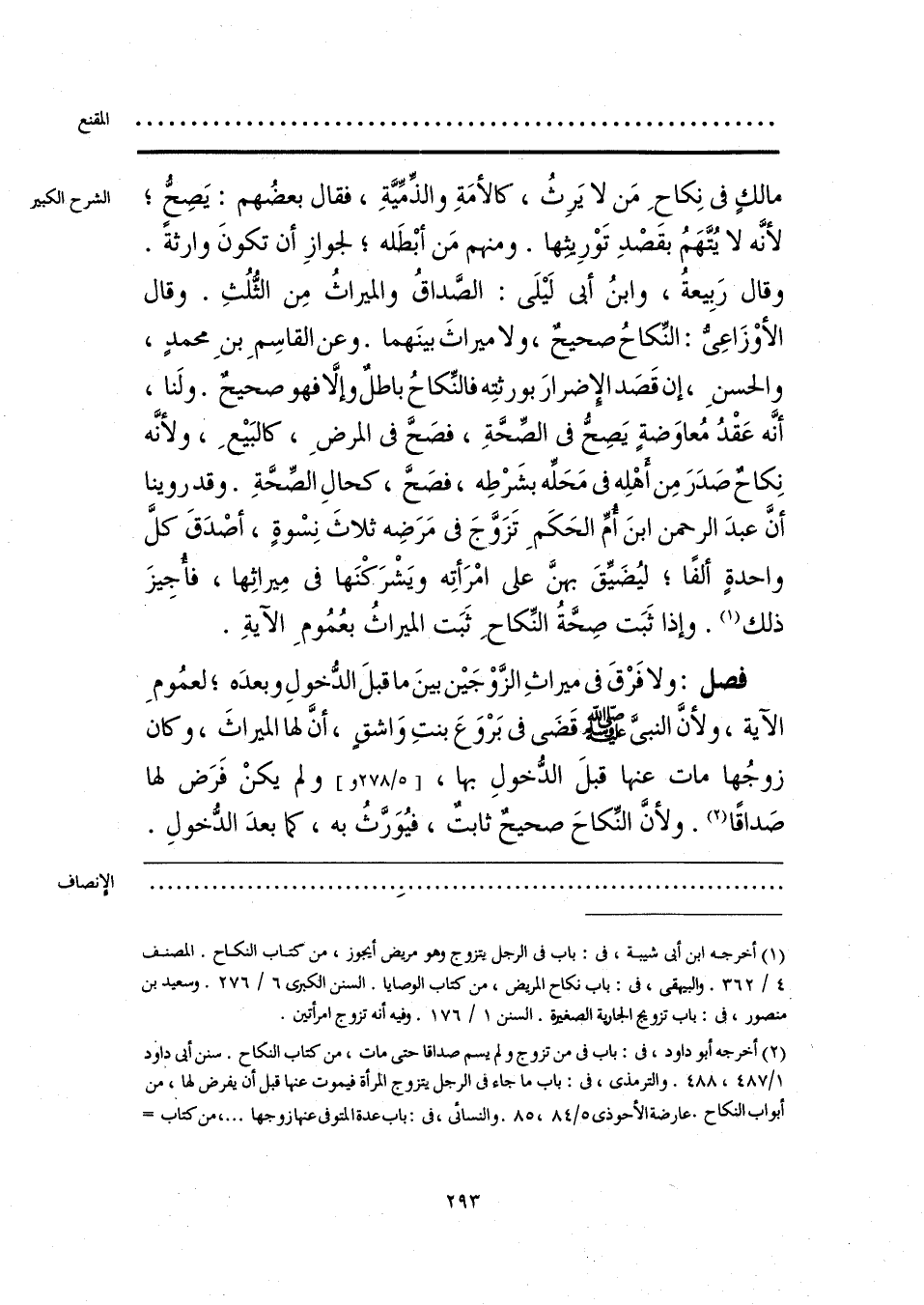فصل: ولا فَرْقَ في ميراثِ الزَّوْجَين بينَ ما قبلَ الدُّخولِ وبعدَه؛ لعمُومِ الآية، ولأنَّ النبيَّ - صلى الله عليه وسلم - قَضَى في بَرْوَعَ بنتِ وَاشقٍ، أنَّ لها الميراثَ، وكان زوجُها مات عنها قبلَ الدُّخولِ بها، ولم يكنْ فَرَض لها صَداقًا (¬2). ولأنَّ النِّكاحَ صحيحٌ ثابتٌ، فيُوَرَّثُ به، كما بعدَ الدُّخولِ.
