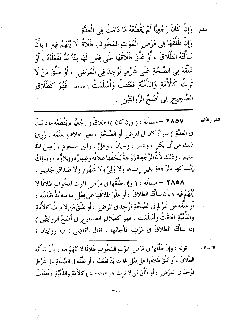 وَإن طَلَّقَهَا في مَرَضِ الْمَوْتِ الْمَخُوفِ طَلَاقًا لَا يُتَّهَمُ فِيهِ؛ بِأَنْ سَأَلتْهُ الطَّلَاقَ، أوْ عَلَّقَ طَلَاقَهَا عَلَى فِعْل لَهَا مِنْهُ بُدٌّ فَفَعَلَتْهُ، أوْ عَلَّقَهُ في الصِّحَّةِ عَلَى شَرْطٍ فَوُجِدَ في الْمَرَضِ، أوْ طَلَّقَ مَنْ لَا تَرِثُ كَالأَمَةِ وَالذِّمِّيَّةِ فَعَتَقَتْ وَأسْلَمَتْ فَهُوَ كَطَلَاقِ الصَّحِيحِ في أصَحِّ الرِّوَايَتَينِ.