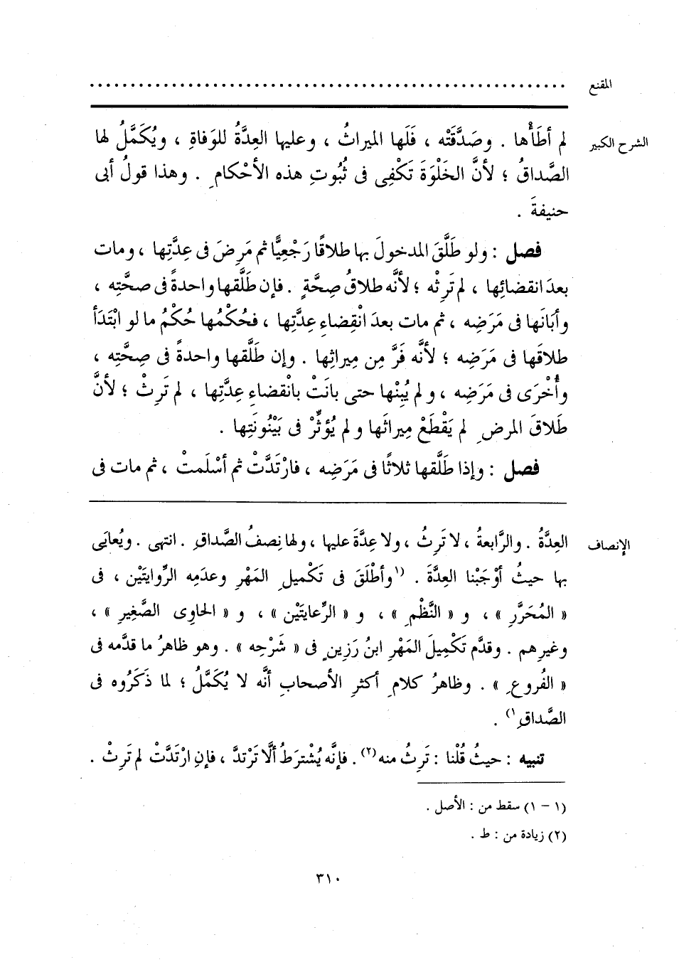 العِدَّةُ. والرَّابعةُ، لا تَرِثُ، ولا عِدَّةَ عليها، ولها نِصفُ الصَّداقِ. انتهى. ويُعايَى بها حيثُ أوْجَبْنا العِدَّةَ. [وأطْلَقَ في تَكْميلِ المَهْرِ وعدَمِه الرِّوايتَين، في «المُحَرَّرِ»، و «النَّظْمِ»، و «الرِّعايتَين»، و «الحاوي الصَّغِيرِ»، وغيرِهم. وقدَّم تَكْمِيلَ المَهْرِ ابنُ رَزِين في «شَرْحِه». وهو ظاهرُ ما قدَّمه في «الفُروعِ». وظاهرُ كلامِ أكثرِ الأصحابِ أنَّه لا يُكَمَّلُ؛ لما ذَكَرُوه في الصَّداقِ] (¬1).