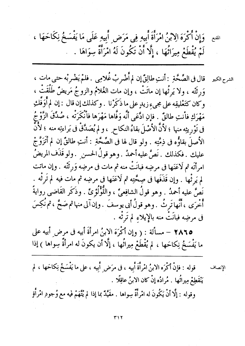 قوله: فإنْ أكْرَه الابنُ امْرأةَ أبِيه، في مرَضِ أبِيه، على ما يَفْسَخُ نِكاحَها، لم يَنْقَطِعْ مِيراثُها. مُرادُه إنْ كان الابنُ عاقِلًا.