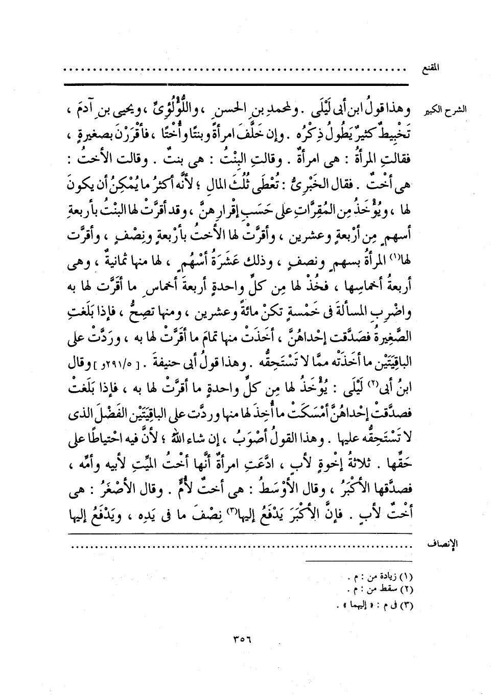 وهذا قولُ ابن أبي لَيلَى. ولمحمدِ بنِ الحسنِ، واللُّولُؤِيِّ، ويحيى بنِ آدمَ، تَخْبِيطٌ كثيرٌ يَطُولُ ذِكْرُه. وإن خَلَّفَ امرأةً وبنتًا وأُخْتًا، فأقرَرْنَ بصغيرةٍ، فقالتِ المرأةُ: هي امرأةٌ. وقالتِ البِنْتُ: هي بنت. وقالت الأخت: هي أخْت. فقال الخَبْرِيُّ: تُعْطَى ثُلُثَ المالِ؛ لأنَّه أكثرُ ما يُمْكِنُ أن يكونَ لها، ويُؤخَذُ مِن المُقِرَّاتِ على حَسَبِ إقْرارِهنَّ، وقد أقرَّتْ لها البنْتُ بأربعةِ أسهمٍ مِن أرْبعةٍ وعشرين، وأقرَّتْ لها الأختُ بأرْبعةٍ ونِصْفٍ، وأقرَّت لها (¬1) المرأةُ بسهم ونصفٍ، وذلك عَشرَةُ أسْهُمٍ، لها منها ثمانية، وهي أربعةُ أخماسِها، فخُذْ لها مِن كلِّ واحدةٍ أربعةَ أخماسِ ما أقَرت لها به واضْرِبِ المسألةَ في خَمْسةٍ تكنْ مائة وعشرين، ومنها تصِحُّ، فإذا بَلَغتِ الصَّغِيرةُ فصَدَّقت إحْداهُنَّ، أخَذَتْ منها تمامَ ما أقَرتْ لها به، ورَدَّتْ على الباقِيَتَين ما أخَذَتْه ممَّا لا تَسْتَحِقُّه. وهذا قولُ أبي حنيفةَ وقال ابنُ أبي (¬2) لَيلَى: يُؤخَذُ لها مِن كلِّ واحدةٍ ما أقرَّتْ لها به، فإذا بَلَغتْ فصدَّقتْ إحْداهُنَّ أمْسَكَتْ ما أُخِذَ لها منها وردَّت على الباقِيَتَين الفَضْلَ الذي لا تَسْتَحِقُّه عليها. وهذا القولُ أصْوَبُ، إن شاء الله؛ لأنَّ فيه احْتياطًا على حَقِّها. ثلاثةُ إخْوةٍ لأب، ادَّعَتِ امرأةٌ أنَّها أخْتُ الميِّتِ لأبيه وأمِّه، فصدَّقها الأكْبَرُ، وقال الأوْسَطُ: هي أختٌ لأُمٍّ. وقال الأصْغَرُ: هي أخْت لأبٍ. فإنَّ الأكبَرَ يَدْفَعُ إليها (¬3) نِصْفَ ما في يَدِه، ويَدْفَعُ إليها