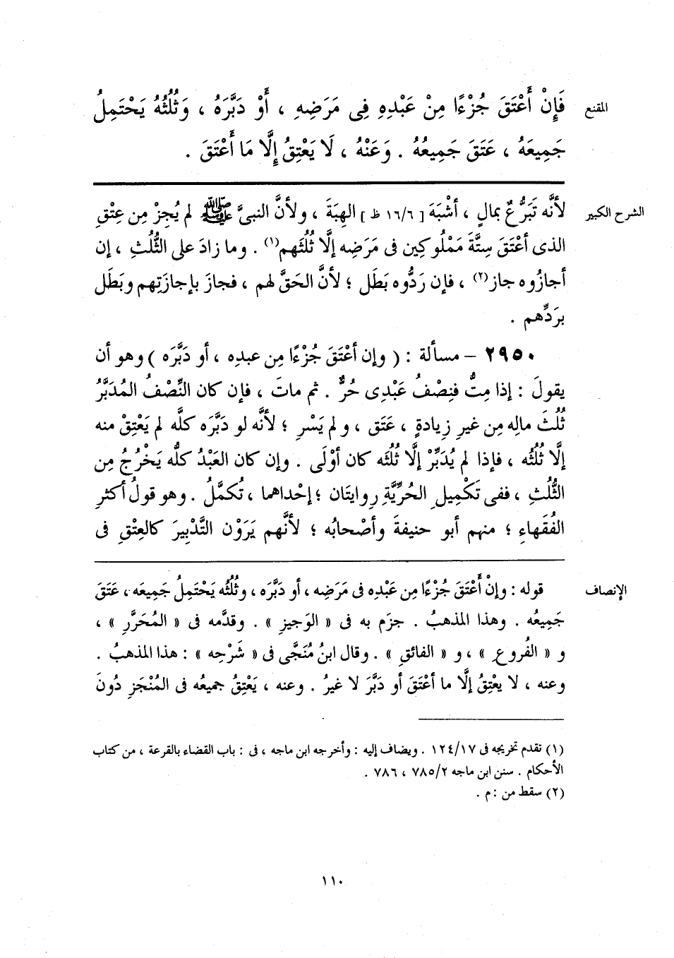 قوله: وإنْ أعْتَقَ جُزْءًا مِن عَبْدِه في مَرَضِه، أو دَبَّرَه، وثُلُثُه يَحْتَمِلُ جَمِيعَهْ، عَتَقَ جَمِيعُه. وهذا المذهبُ. جزَم به في «الوَجيزِ». وقدَّمه في «المُحَرَّرِ»، و «الفُروعِ»، و «الفائقِ». وقال ابنُ مُنَجَّى في «شَرْحِه»: هذا المذهبُ. وعنه، لا يعْتِقُ إلَّا ما أعْتَقَ أو دَبَّرَ لا غيرُ. وعنه، يَعْتِقُ جميعُه في المُنْجَزِ دُونَ