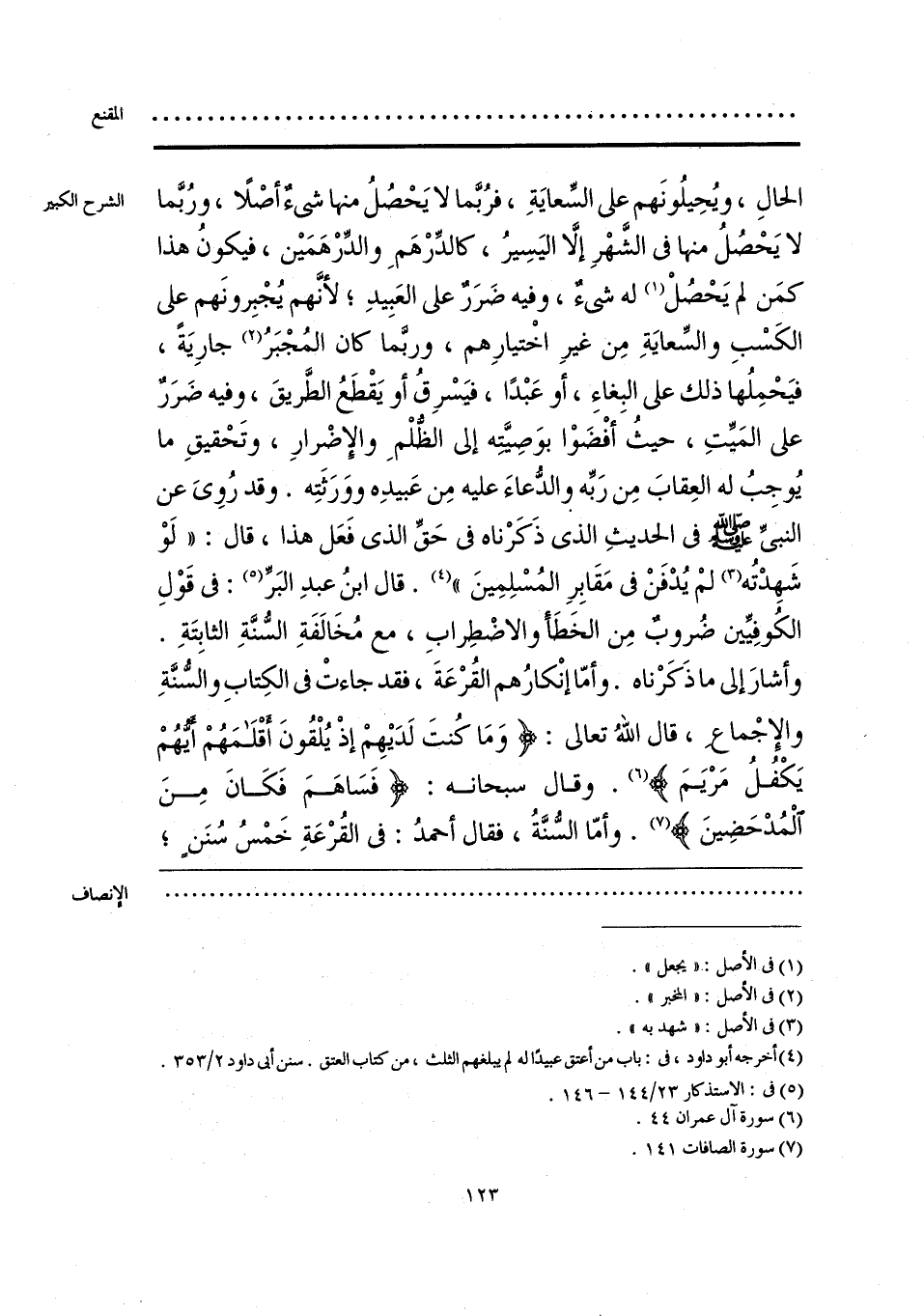 الحالِ، ويُحِيلُونَهم على السِّعايَةِ، فرُبَّما لا يَحْصُلُ منها شيءٌ أصْلًا، ورُبَّما لا يَحْصُلُ منها في الشَّهْرِ إلَّا اليَسِيرُ، كالدِّرْهَمِ والدِّرْهَمَين، فيكونُ هذا كمَن لم يَحْصُلْ (¬1) له شيءٌ، وفيه ضَرَرٌ على العَبِيدِ؛ لأنَّهم يُجْبِرونَهم على الكَسْبِ والسِّعايَةِ مِن غيرِ اخْتيارِهم، وربما كان المُجْبَرُ (¬2) جارِيَةً، فيَحْمِلُها ذلك على البِغاءِ، أو عَبْدًا، فيَسْرِقُ أو يَقْطَعُ الطَّريقَ، وفيه ضَرَرٌ على المَيِّتِ، حيثُ أفْضَوْا بوَصِيَّته إلى الظُّلْمِ والإضْرارِ، وتَحْقيقِ ما يُوجِبُ له العِقابَ مِن رَبِّه والدُّعاءَ عليه مِن عَبيدِه ووَرَثَتِه. وقد رُوِيَ عن النبيِّ - صلى الله عليه وسلم - في الحديثِ الذي ذَكَرْناه في حَقِّ الذي فَعَل هذا، قال: «لَوْ شَهِدْتُه (¬3) لمْ يُدْفَنْ في مَقَابِرِ المُسْلِمِينَ» (¬4). قال ابنُ عبدِ البَرِّ (¬5): في قَوْلِ الكُوفِيِّين ضُروبٌ مِن الخَطَأ والاضْطِرابِ، مع مُخَالفَةِ السُّنَّةِ الثابِتَةِ. وأشارَ إلى ما ذَكَرْناه. وأمّا إنْكارُهم القُرْعَةَ، فقد جاءتْ في الكِتابِ والسُّنَّةِ والإِجْماعِ، قال اللهُ تعالى: {وَمَا كُنْتَ لَدَيهِمْ إِذْ يُلْقُونَ أَقْلَامَهُمْ أَيُّهُمْ يَكْفُلُ مَرْيَمَ} (¬6). وقال سبحانه: {فَسَاهَمَ فَكَانَ مِنَ الْمُدْحَضِينَ} (¬7). وأمّا السُّنَّةُ، فقال أحمدُ: في القُرْعَةِ خَمْسُ سُنَنٍ؛
