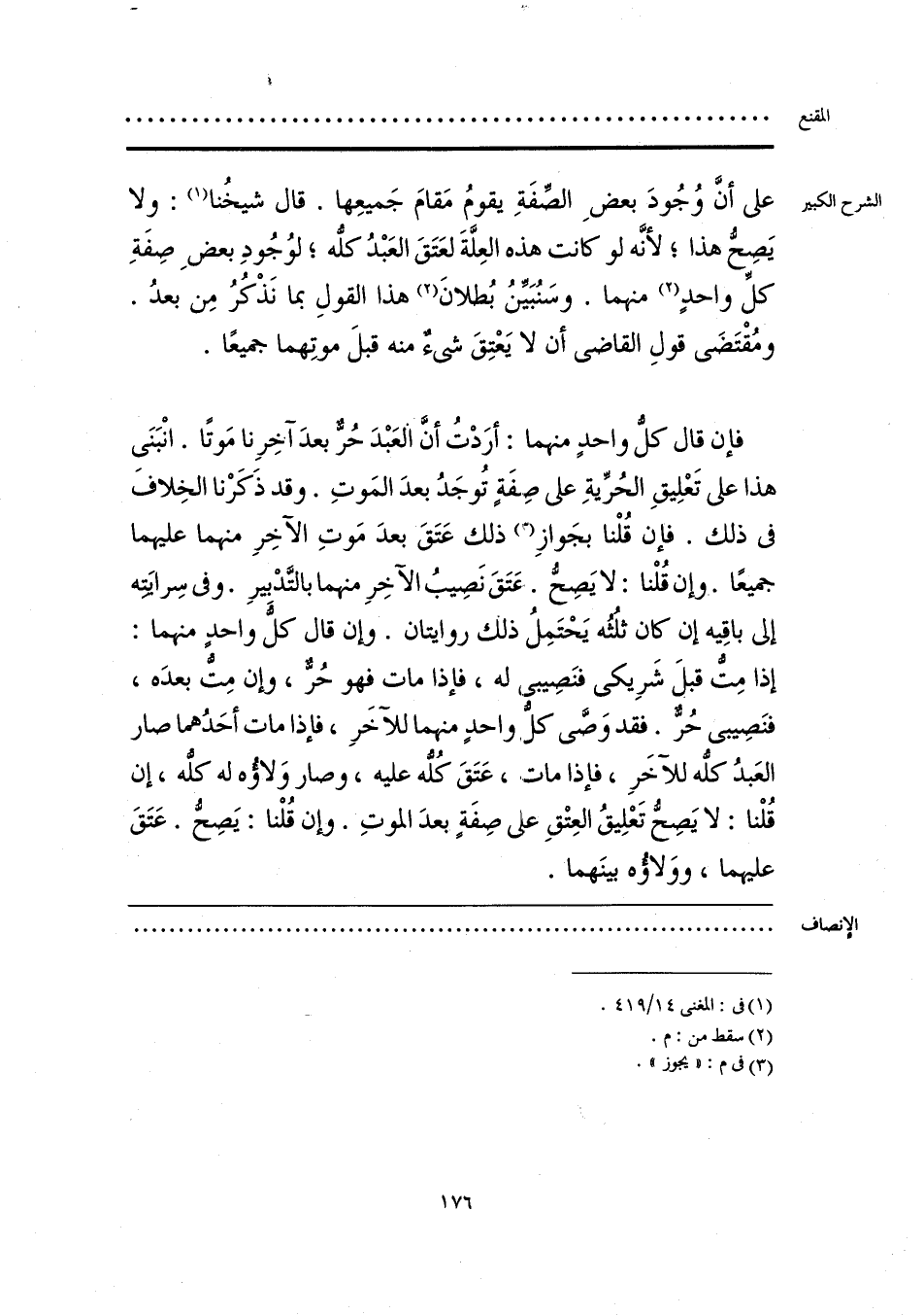 على أنَّ وُجُودَ بعضِ الصِّفَةِ يقومُ مَقامَ جَميعِها. قال شيخُنا (¬1): ولا يَصِحُّ هذا؛ لأنَّه لو كانت هذه العِلَّةَ لعَتَقَ العَبْدُ كلُّه؛ لوُجُودِ بعضِ صِفَةِ كلِّ واحدٍ (¬2) منهما. وسنُبَيِّنُ بُطلانَ (2) هذا القولِ بما نَذْكُرُ مِن بعدُ. ومُقْتَضَى قولِ القاضي أن لا يَعْتِقَ شيءٌ منه قبلَ موتِهما جميعًا.
