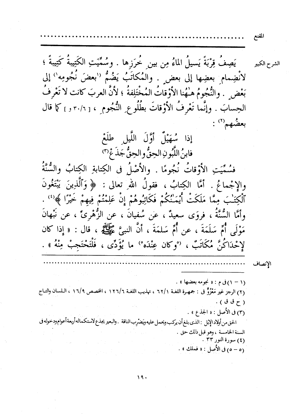 فسُمِّيَتِ الأوْقاتُ نُجُومًا. والأصْلُ في الكِتابةِ الكِتابُ والسُّنَّةُ والإِجْماعُ. أمَّا الكِتابُ، فقولُ اللهِ تعالى {وَالَّذِينَ يَبْتَغُونَ الْكِتَبَ مِمَّا مَلَكَتْ أَيمَنُكُمْ فَكَاتِبُوهُمْ إِنْ عَلِمْتُمْ فِيهِمْ خَيرًا} (¬4). وأمَّا السُّنَّةُ، فروَى سعيدٌ، عن سُفيانَ، عن الزُّهْرِيِّ، عن نَبْهانَ مَوْلَى أُمِّ سَلَمَةَ، عن أُمِّ سَلمَةَ، أنَّ النبيَّ - صلى الله عليه وسلم - قال: «إِذا كان لإِحْدَاكُنَّ مُكَاتَبٌ، [وكان عِنْدَه] (¬5) ما يُؤَدِّي، فَلْتَحْتَجِبْ مِنْهُ».
