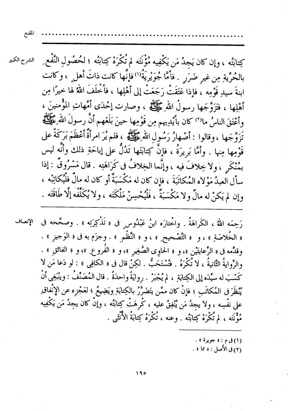 رَحِمَه اللهُ، الكَراهَةُ. واخْتارَه ابنُ عَبْدُوس في «تَذْكِرَتِه». وصحَّحه في «الخُلاصَةِ»، و «التَّصْحيحِ»، و «النَّظْمِ». وجزَم به في «الوَجيزِ». وقدَّمه في «الرِّعايتَين»، و «الحاوي الصَّغِيرِ»، و «الفُروعِ»، و «الفائقِ». والرِّوايةُ الثَّانيةُ، لا تُكْرَهُ. فتُسْتَحَبُّ. لكِنْ قال في «الكافِي»: لو دَعا مَن لا كَسْبَ له سيِّدَه إلى الكِتابَةِ، لم يُجْبَرْ. رِوايَةً واحدَةً. قال المُصَنِّفُ: وينْبَغِي أنْ يُنْظَرَ في المُكاتَبِ، فإنْ كان ممَّن يتَضَرَّرُ بالكِتابَةِ ويَضِيعُ؛ لعَجْزِه عن الإنْفاقِ على نفْسِه، ولا يجِدُ مَن يُنْفِقُ عليه، كُرِهَتْ كِتابَتُه، وإنْ كان يجِدُ مَن يَكْفِيه مُؤْنَتَه، لم تُكْرَهْ كِتابَتُه. وعنه، تُكْرَهُ كِتابَةُ الأُنثَى.