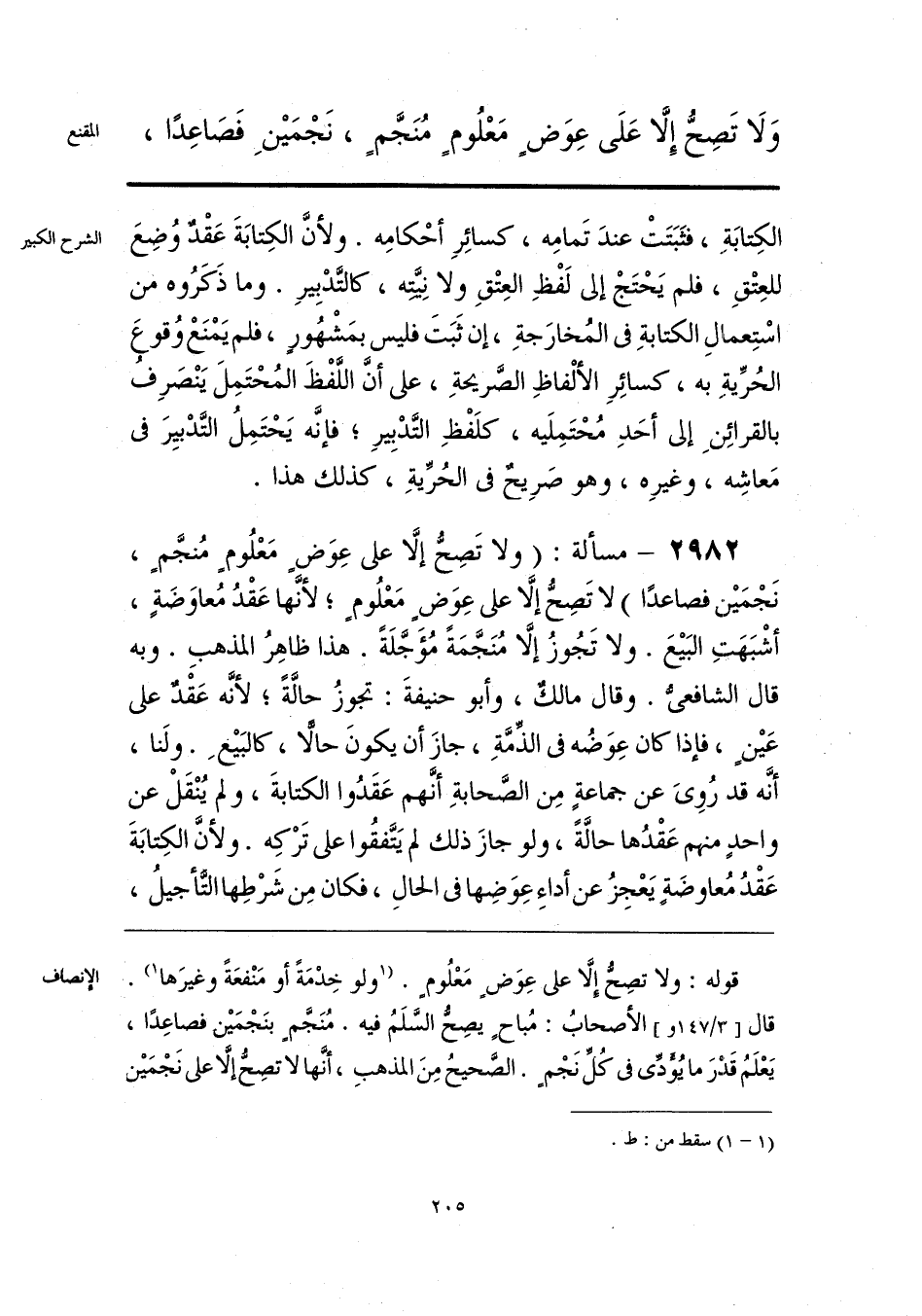 وَلَا تَصِحُّ إلا عَلَى عِوَضٍ مَعْلُومٍ، مُنَجَّمٍ، نَجْمَينِ فَصَاعِدًا،