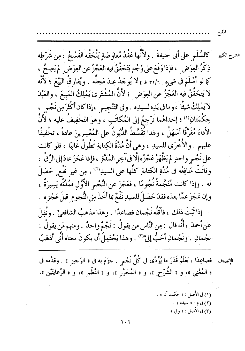 فصاعِدًا، يَعْلَمُ قَدْرَ ما يُؤَدِّي في كُلِّ نَجْمٍ. جزَم به في «الوَجيزِ». وقدَّمه في «المُغْنِي»، و «الشَّرْحِ»، و «المُحَرَّرِ»، و «النَّظْمِ»، و «الرِّعايتَين»،