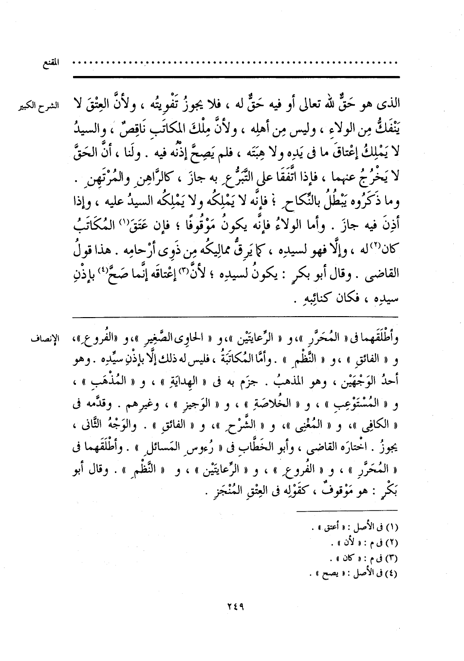 وأطْلَقَهما في «المُحَرَّرِ»، و «الرِّعايتَين»، و «الحاوي الصَّغِيرِ»، و «الفُروعِ»، و «الفائقِ»، و «النَّظْمِ». وأمَّا المُكاتَبَةُ، فليس له ذلك إلَّا بإذْنِ سيِّدِه. وهو أحدُ الوَجْهَين، وهو المذهبُ. جزَم به في «الهِدايَةِ»، و «المُذْهَبِ»، و «المُسْتَوْعِبِ»، و «الخُلاصَةِ»، و «الوَجيزِ»، وغيرِهم. وقدَّمه في «الكافِي»، و «المُغْنِي»، و «الشَّرْحِ»، و «الفائقِ». والوَجْهُ الثَّاني، يجوزُ. اخْتارَه القاضي، وأبو الخَطَّابِ في «رُءوسِ المَسائلِ». وأطْلَقَهما في «المُحَرَّرِ»، و «الفُروعِ»، و «الرِّعايتَين»، و «النَّظْمِ». وقال أبو بَكْرٍ: هو مَوْقوفٌ، كقَوْلِه في العِتْقِ المُنْجَزِ.