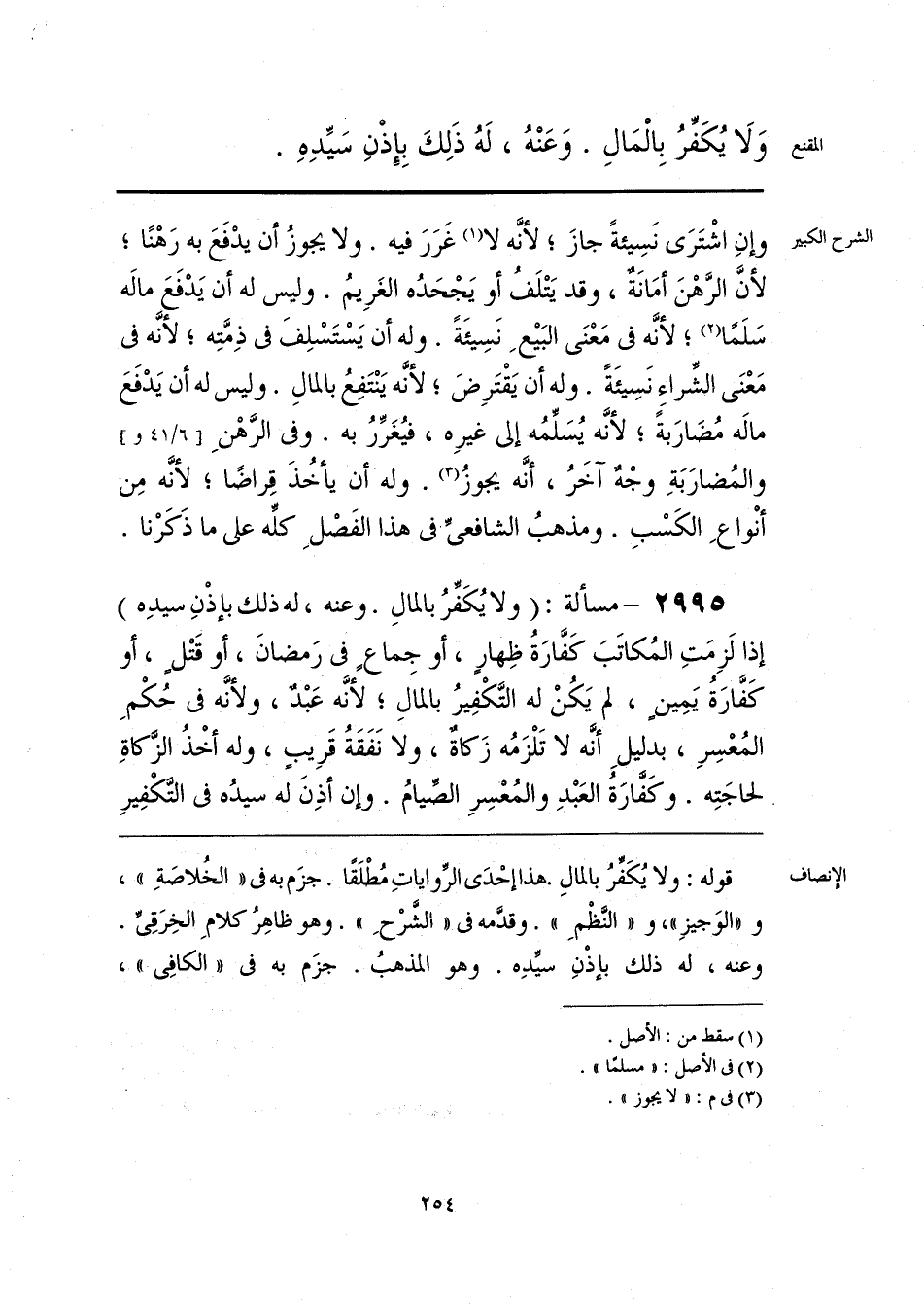 قوله: ولا يُكَفِّرُ بالمالِ. هذا إحْدَى الرِّواياتِ مُطْلَقًا. جزَم به في «الخُلاصَةِ»، و «الوَجيزِ»، و «النَّظْمِ». وقدَّمه في «الشَّرْحِ». وهو ظاهِرُ كلامِ الخِرَقِيِّ. وعنه، له ذلك بإذْنِ سيِّدِه. وهو المذهبُ. جزَم به في «الكافِي»،