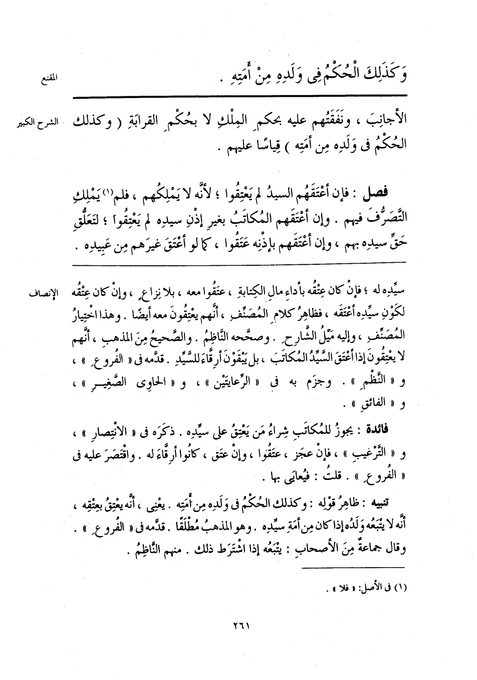 سيِّدِه له؛ فإنْ كان عِتْقُه بأداءِ مالِ الكِتابةِ، عتَقُوا معه، بلا نِزاعٍ، وإنْ كان عِتْقُه لكَوْنِ سيِّدِه أعْتَقَه، فظاهِرُ كلامِ المُصَنِّفِ، أنَّهم يعْتِقُونَ معه أيضًا. وهذا اخْتِيارُ المُصَنِّفِ، وإليه مَيلُ الشَّارِحِ. وصحَّحه النَّاظِمُ. والصَّحيحُ مِنَ المذهبِ، أنَّهم لا يعْتِقُونَ إذا أعْتَقَ السَّيِّدُ المُكاتَبَ، بل يَبْقَوْنَ أرِقَّاءَ للسَّيِّدِ. قدَّمه في «الفُروعِ»، و «النَّظْمِ». وجزَم به في «الرِّعايتَين»، و «الحاوي الصَّغِيرِ»، و «الفائقِ».