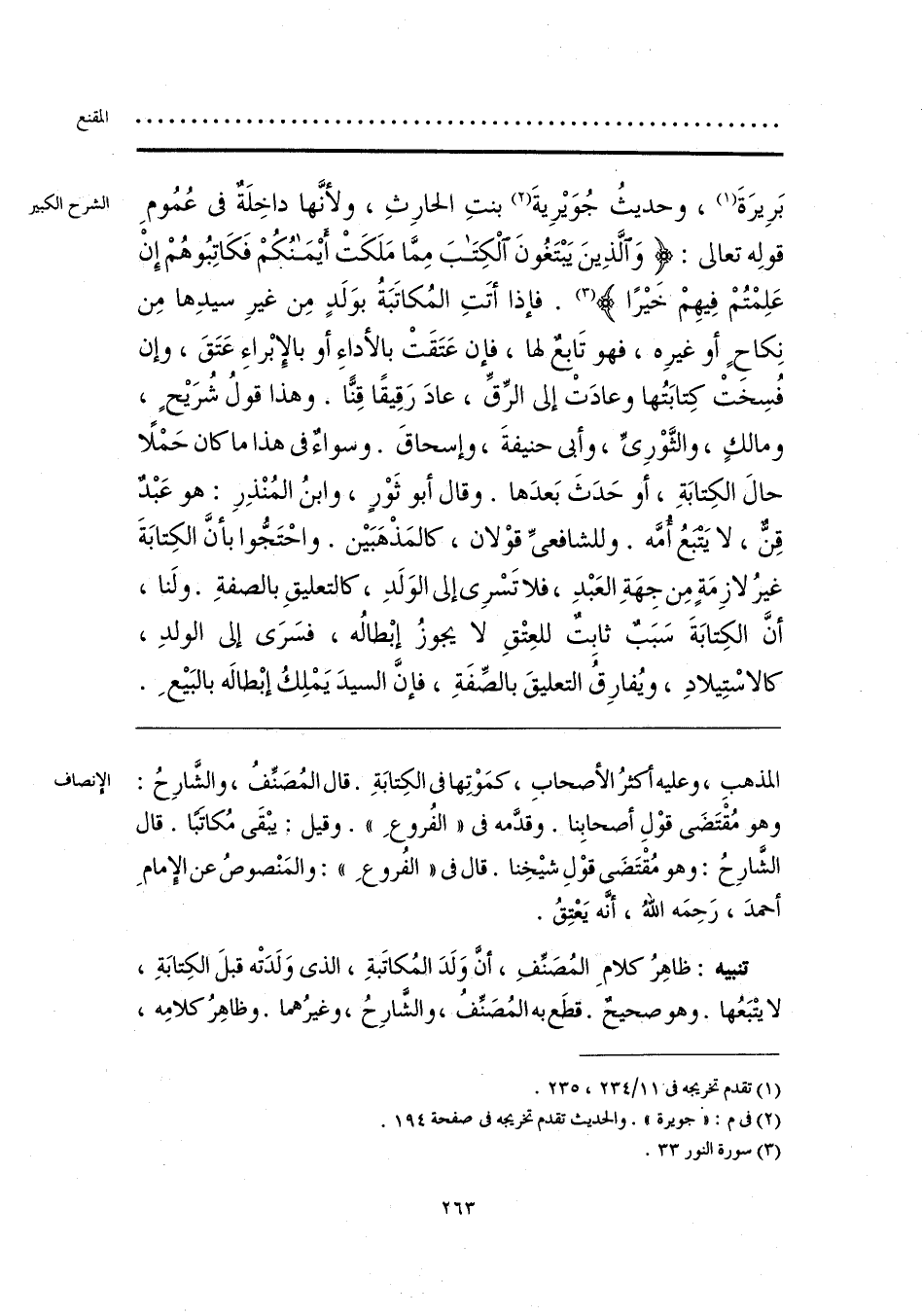 تنبيه: ظاهِرُ كلامِ المُصَنِّفِ، أنّ وَلَدَ المُكاتَبةِ، الذي وَلَدَتْه قبلَ الكِتابَةِ، لا يتْبَعُها. وهو صحيحٌ. قطَع به المُصَنِّفُ، والشَّارِحُ، وغيرُهما. وظاهِرُ كلامِه،