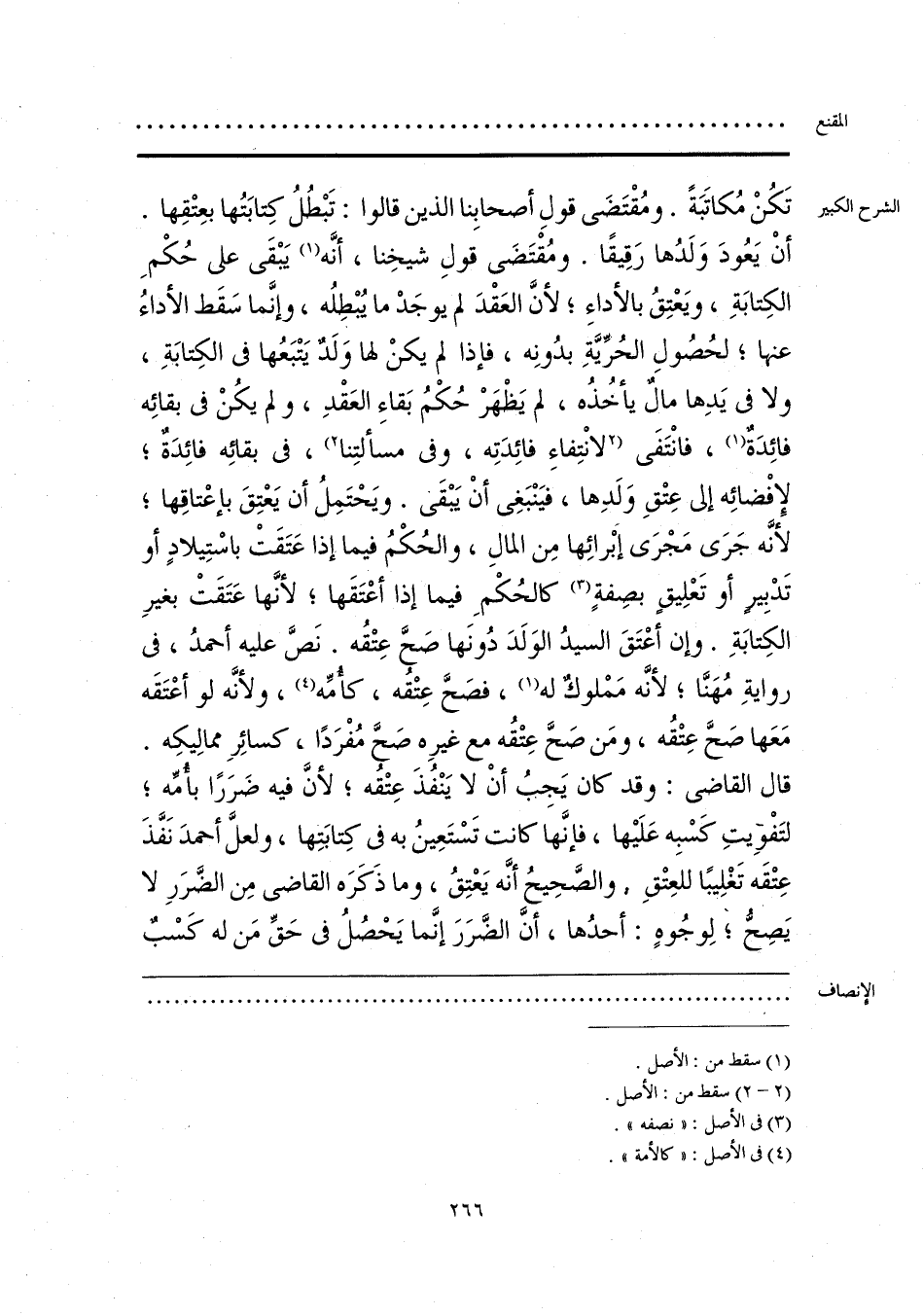 تَكُنْ مُكاتَبَةً. ومُقْتَضَى قولِ أصحابِنا الذين قالوا: تَبْطُلُ كِتابَتُها بعِتْقِها. أنْ يَعُودَ وَلَدُها رَقِيقًا. ومُقْتَضَى قولِ شيخِنا، أنَّه (1) يَبْقَى على حُكْمِ الكِتابَةِ، ويَعْتِقُ بالأداءِ؛ لأنَّ العَقْدَ لم يوجَدْ ما يُبْطِلُه، وإنَّما سَقَط الأداءُ عنها؛ لحُصُولِ الحُرِّيَّةِ بدُونِه، فإذا لم يكنْ لها وَلَدٌ يَتْبَعُها في الكِتابَةِ، ولا في يَدِها مالٌ يأخُذُه، لم يَظْهَرْ حُكْمُ بَقاءِ العَقْدِ، ولم يكُنْ في بقائِه فائِدَةٌ (¬1)، فانْتَفَى [لانْتِفاءِ فائِدَتِه، وفي مسألتِنا] (¬2)، في بقائه فائِدَةٌ؛ لإِفْضائِه إلى عِتْقِ وَلَدِها، فيَنْبَغِي أنْ يَبْقَى. ويَحْتَمِلُ أن يَعْتِقَ بإعْتاقِها؛ لأنَّه جَرَى مَجْرَى إبْرائِها مِن المالِ، والحُكْمُ فيما إذا عَتَقَتْ باسْتِيلادٍ أو تَدْبِيرٍ أو تَعْلِيقٍ بصِفةٍ (¬3) كالحُكْمِ فيما إذا أعْتَقَها؛ لأنَّها عَتَقَتْ بغيرِ الكِتابَةِ. وإن أعْتَقَ السيدُ الوَلَدَ دُونَها صَحَّ عِتْقُه. نَصَّ عليه أحمدُ، في روايةِ مُهَنَّا؛ لأنَّه مَمْلوكٌ له (1)، فصَحَّ عِتْقُه، كأُمِّه (¬4)، ولأنَّه لو أعْتَقَه مَعَها صَحَّ عِتْقُه، ومَن صَحَّ عِتْقُه مع غيرِه صَحَّ مُفْرَدًا، كسائِرِ ممالِيكِه. قال القاضي: وقد كان يَجِبُ أنْ لا يَنْفُذَ عِتْقُه؛ لأنَّ فيه ضَرَرًا بأُمِّه؛ لتَفْوِيتِ كَسْبِه عَلَيها، فإنَّها كانت تَسْتَعِينُ به في كِتابَتِها، ولعلَّ أحمدَ نَفَّذَ عِتْقَه تَغْلِيبًا للعِتْقِ، والصَّحِيحُ أنَّه يَعْتِقُ، وما ذَكَرَه القاضي مِن الضَّرَرِ لا يَصِحُّ؛ لِوجُوهٍ: أحدُها، أنَّ الضَّرَرَ إنَّما يَحْصُلُ في حَقِّ مَن له كَسْبٌ