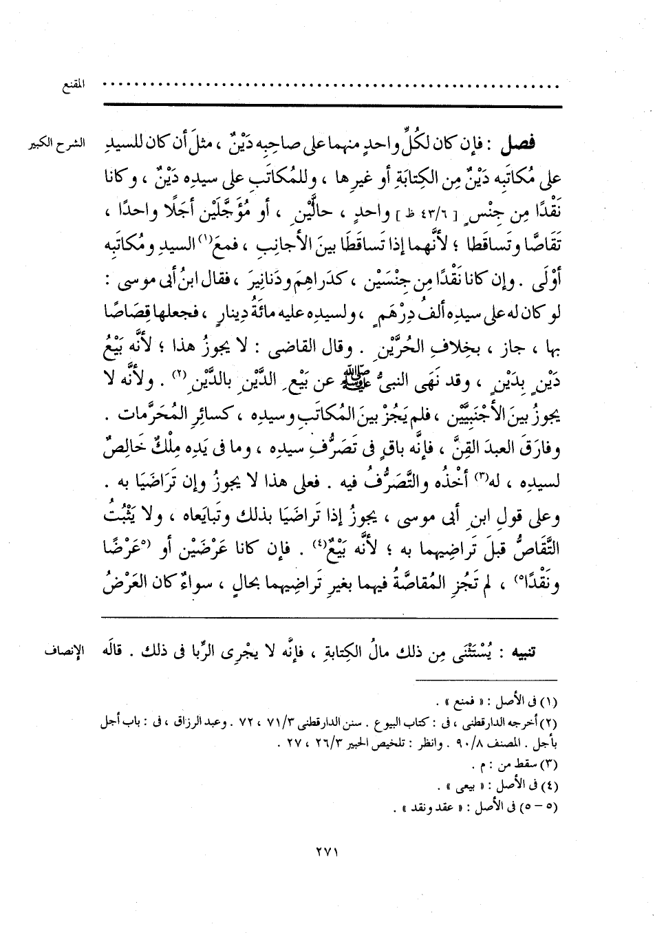 تنبيه: يُسْتَثْنَى مِن ذلك مالُ الكِتابةِ، فإنَّه لا يجْرِي الرِّبا في ذلك. قاله