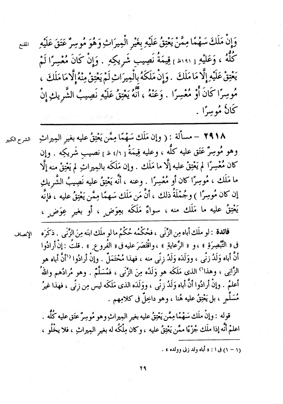 قوله: وإنْ ملَك سَهْمًا مِمَّن يَعْتِقُ عليه بغيرِ المِيراثِ وهو مُوسِرٌ عتَق عليه كُلُّه. اعلمْ أنَّه إذا ملَك جُزْءًا ممن يَعْتِقُ عليه، وكان مِلْكُه له بغيرِ المِيراثِ، فلا يخْلُو،
