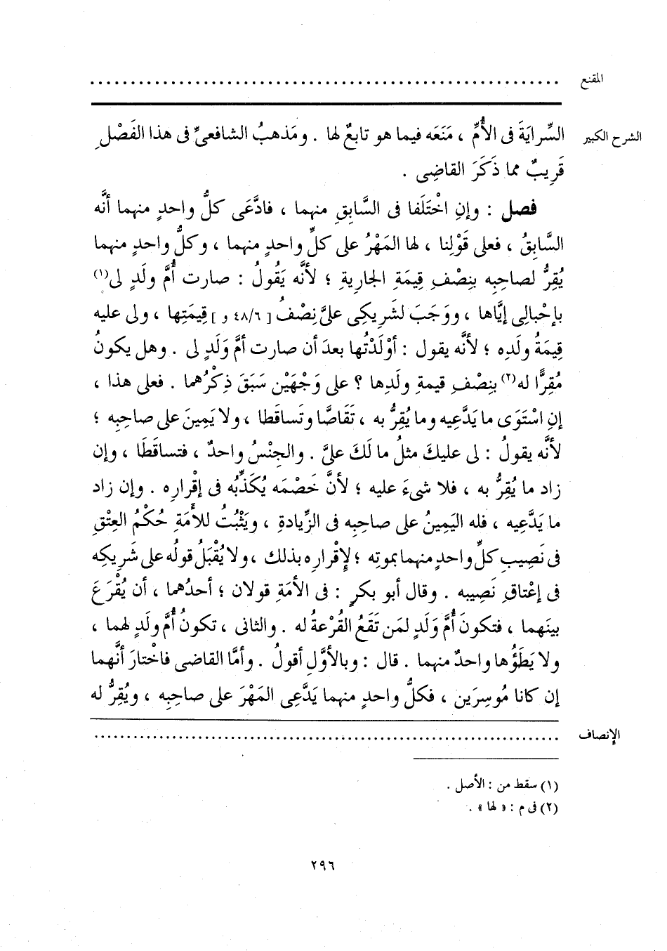 السِّرايَةَ في الأُمِّ، مَنَعَه فيما هو تابعٌ لها. ومَذهبُ الشافعيِّ في هذا الفَصْلِ قَرِيبٌ مما ذَكَرَ القاضِي.