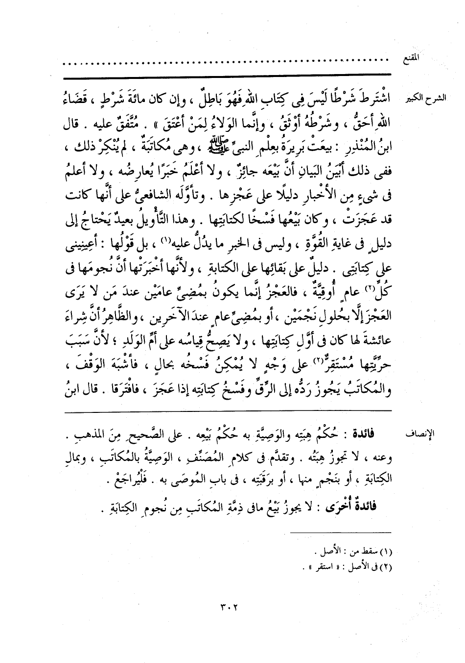 فائدةٌ أخْرَى: لا يجوزُ بَيعُ ما في ذِمَّةِ المُكاتَبِ مِن نُجومِ الكِتابَةِ.