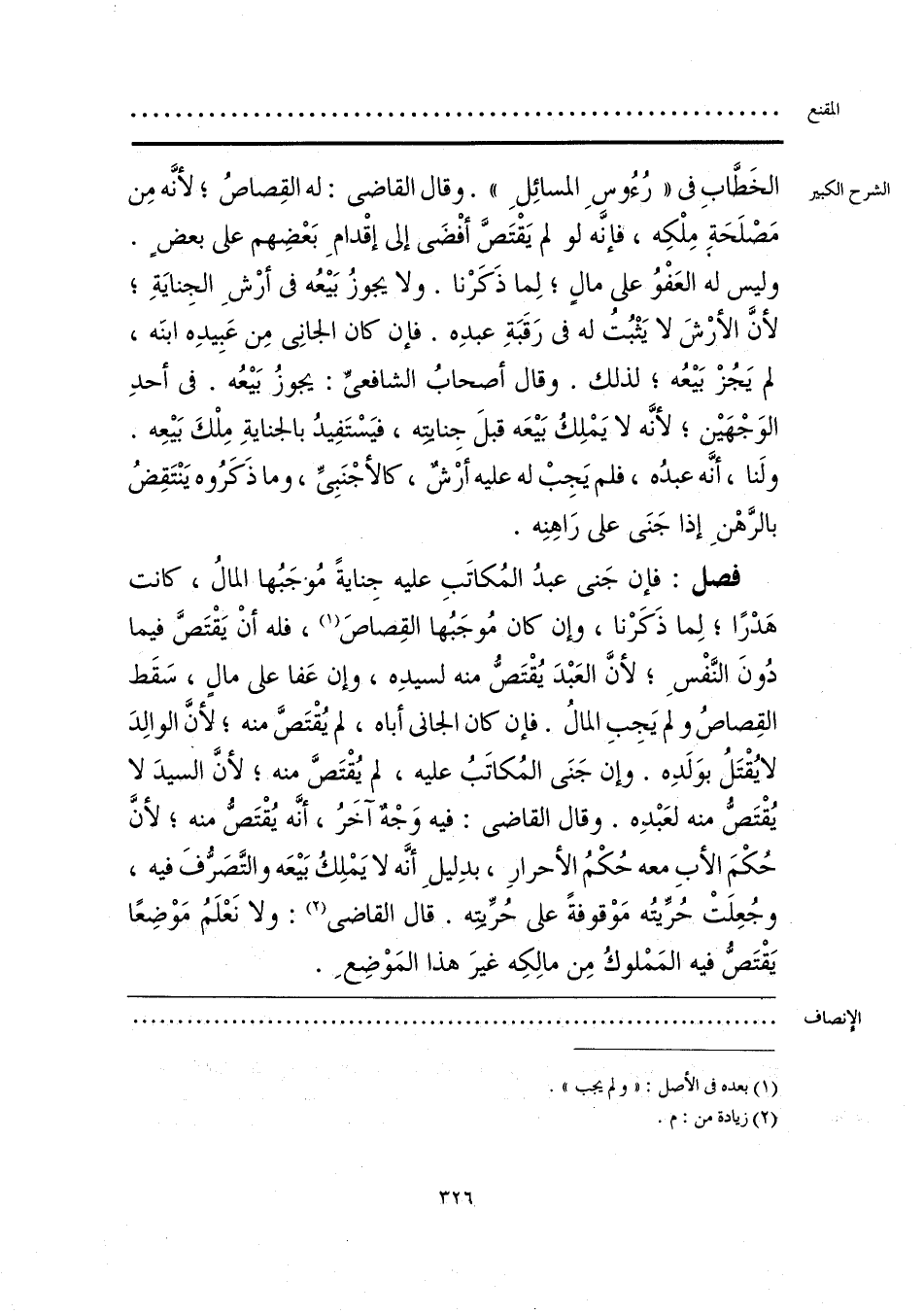 فصل: فإن جَنى عبدُ المُكاتَبِ عليه جِنايةً مُوجَبُها المالُ، كانت هَدْرًا؛ لِما ذَكَرْنا، وإن كان مُوجَبُها القِصاصَ (¬1)، فله أنْ يَقتَصَّ فيما دُونَ النَّفْسِ؛ لأنَّ العَبْدَ يُقْتَصُّ منه لسيدِه، وإن عَفا على مالٍ، سَقَط القِصاصُ ولم يَجِبِ المالُ. فإن كان الجاني أباه، لم يُقْتَصَّ منه؛ لأنَّ الوالِدَ لا يُقْتَلُ بوَلَدِه. وإن جَنَى المُكاتَبُ عليه، لم يُقْتَصَّ منه؛ لأنَّ السيدَ لا يُقْتَصُّ منه لعَبْدهِ. وقال القاضي: فيه وَجْهٌ آخَرُ، أنَّه يُقْتَصُّ منه؛ لأنَّ حكْمَ الأبِ معه حُكْمُ الأحرارِ، بدِليلِ أنَّه لا يَمْلِكُ بَيعَه والتَّصَرُّفَ فيه، وجُعِلَتْ حُرِّيتُه مَوْقوفةً على حُرِّيته. قال القاضي (¬2): ولا نَعْلَمُ مَوْضِعًا يَقْتَصُّ فيه المَمْلوكُ مِن مالِكِه غيرَ هذا المَوْضِعِ.