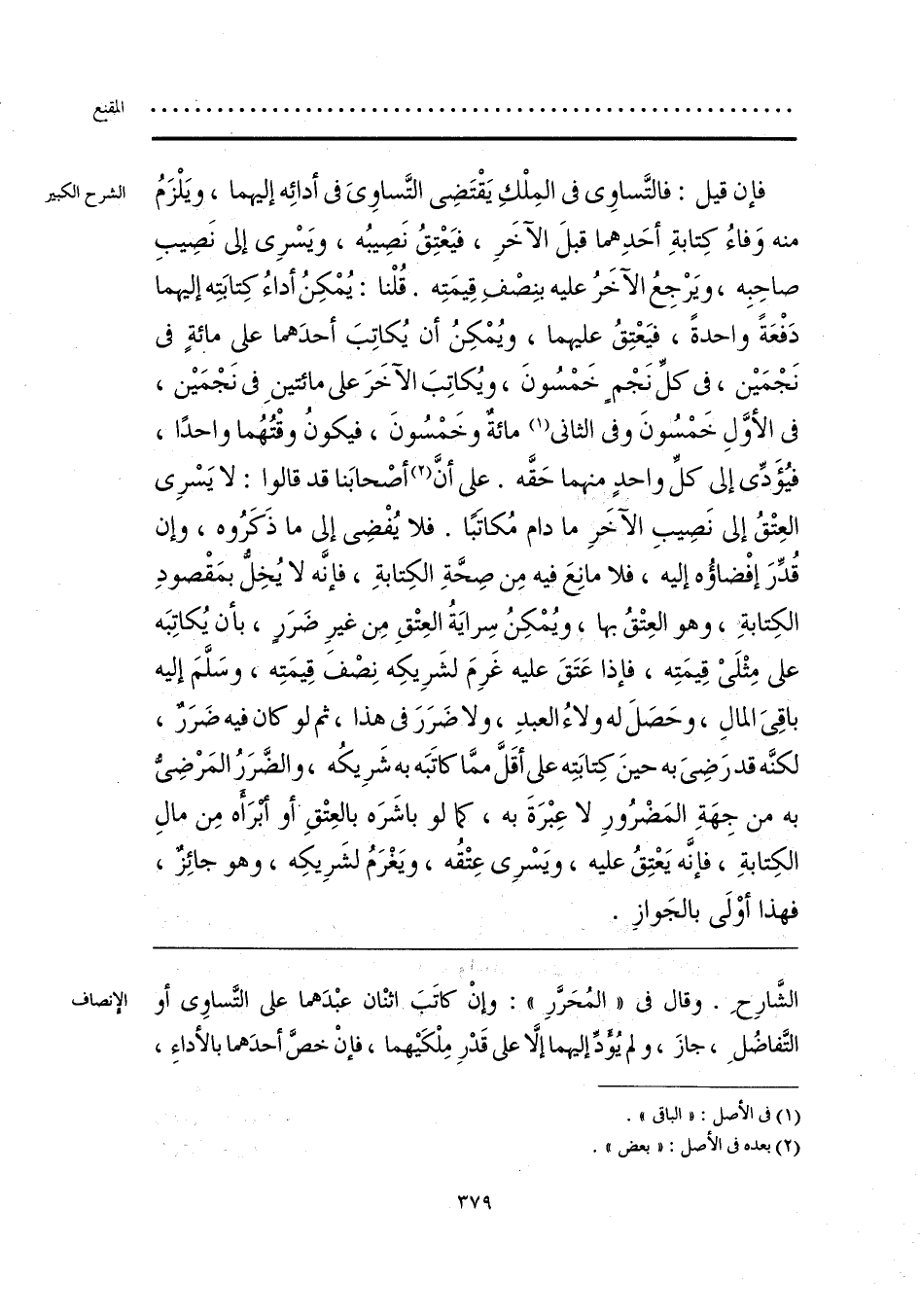 الشَّارِحِ. وقال في «المُحَرَّرِ»: وإنْ كاتَبَ اثنْان عبْدَهما على التَّساوي أو التَّفاضُلِ، جازَ، ولم يُؤدِّ إليهما إلَّا على قَدْرِ مِلْكَيهما، فإنْ خصَّ أحدَهما بالأداءِ،