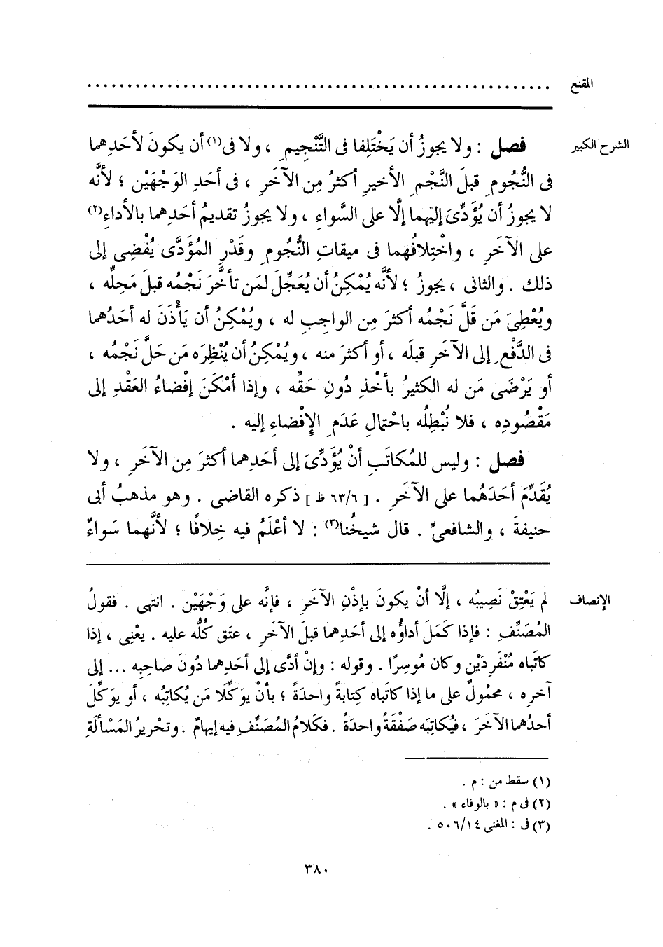 لم يَعْتِقْ نَصِيبُه، إلَّا أنْ يكونَ بإذْنِ الآخَرِ، فإنه على وَجْهَين. انتهى. فقولُ المُصَنِّف: فإذا كَمَلَ أداؤُه إلى أحَدِهما قبلَ الآخَرِ، عتَق كُلُّه عليه. يعْنِي، إذا كاتَباه مُنْفَرِدَين وكان مُوسِرًا. وقوله: وإنْ أدَّى إلى أحَدِهما دُونَ صاحِبِه. . . . إلى آخرِه، محمْولٌ على ما إذا كاتَباه كِتابةً واحدَةً؛ بأن يوَكِّلَا مَن يُكاتِبُه، أو يوَكِّلَ أحدُهما الآخَرَ، فيُكاتِبَه صَفْقَةً واحدَةً. فكَلامُ المُصَنِّفِ فيه إيهامٌ. وتحْريرُ المَسْألَةِ