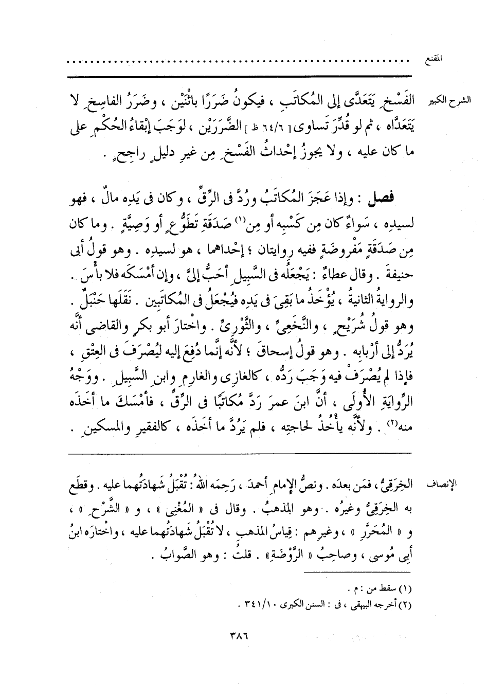 الخِرَقِيُّ، فمَن بعدَه. ونصُّ الإِمامِ أحمدَ، رَحِمَه اللهُ: تُقْبَلُ شَهادَتُهما عليه. وقطَع به الخِرَقِيُّ وغيرُه. وهو المذهبُ. وقال في «المُغْنِي»، و «الشَّرْحِ»، و «المُحَرَّرِ»، وغيرِهم: قِياسُ المذهبِ، لا تُقْبَلُ شَهادَتُهما عليه، واخْتارَه ابنُ أبِي مُوسى، وصاحِبُ «الرَّوْضَةِ». قلتُ: وهو الصَّوابُ.
