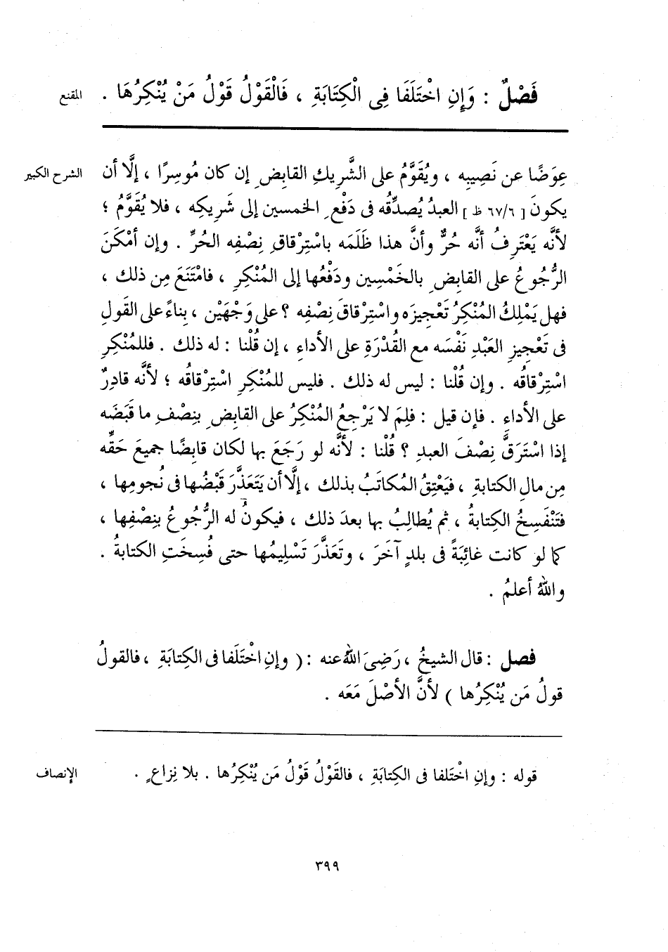 فَصْلٌ: وَإِنِ اخْتَلَفَا في الْكِتَابَةِ، فَالْقَوْلُ قَوْلُ مَنْ يُنْكِرُهَا.