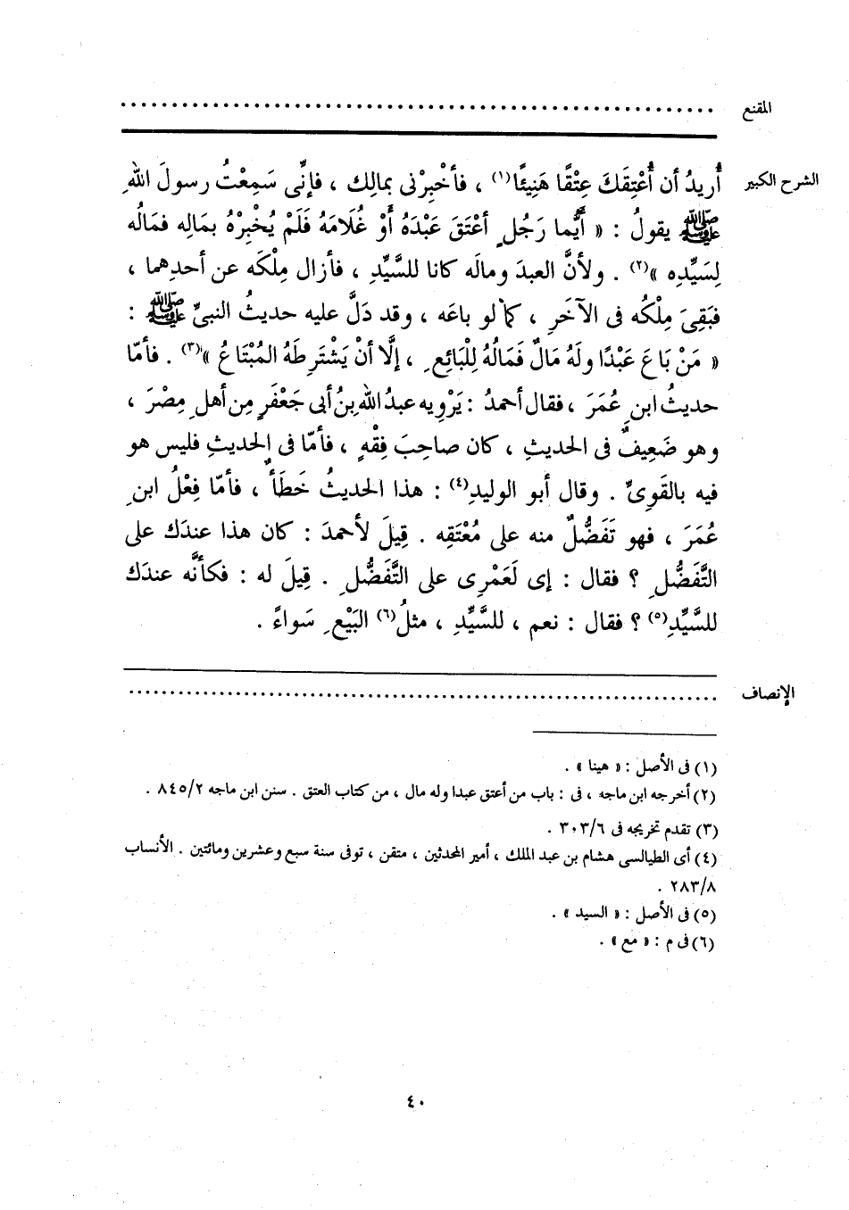 (¬2) أخرجه ابن ماجه، في: باب من أعتق عبدا وله مال، من كتاب العتق. سنن ابن ماجه 2/ 845.